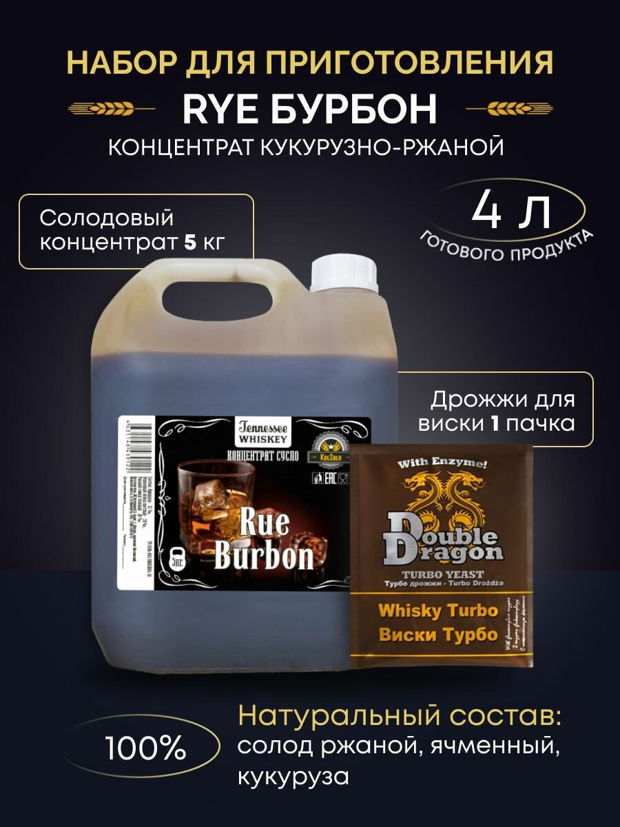 Солодовый концентрат "RYE БУРБОН" + дрожжи Double Dragon для виски + набор для настаивания Виски