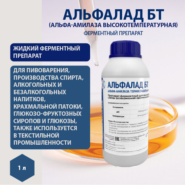 Альфалад БТ, альфа-амилаза высокотемпературная 800ед/мл.1л. Для зерновых культур. интересное: