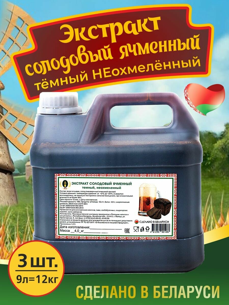 Купить Экстракт солодовый ячменный тёмный неохмелённый 3 упак. по 3л/4кг