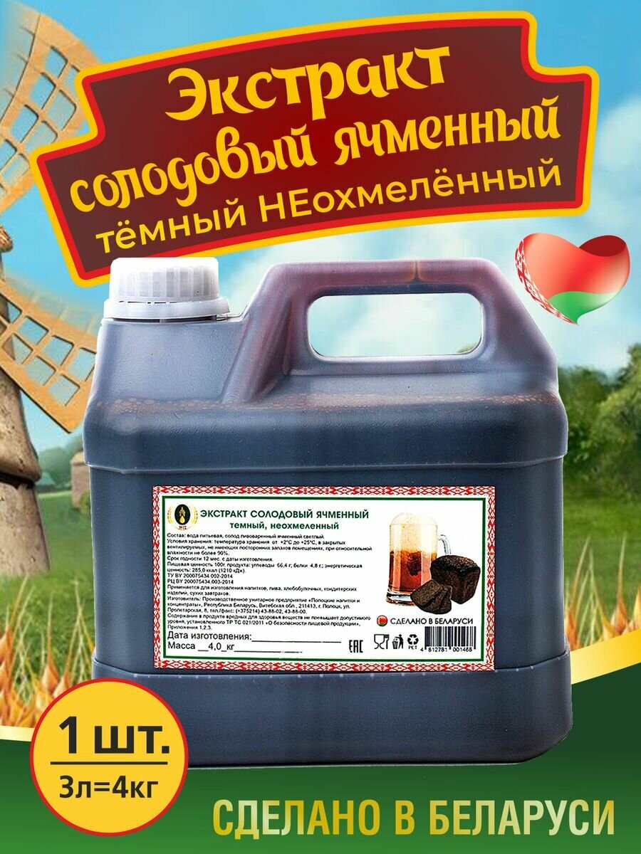 Экстракт солодовый ячменный тёмный неохмелённый 3л/4кг интересное: