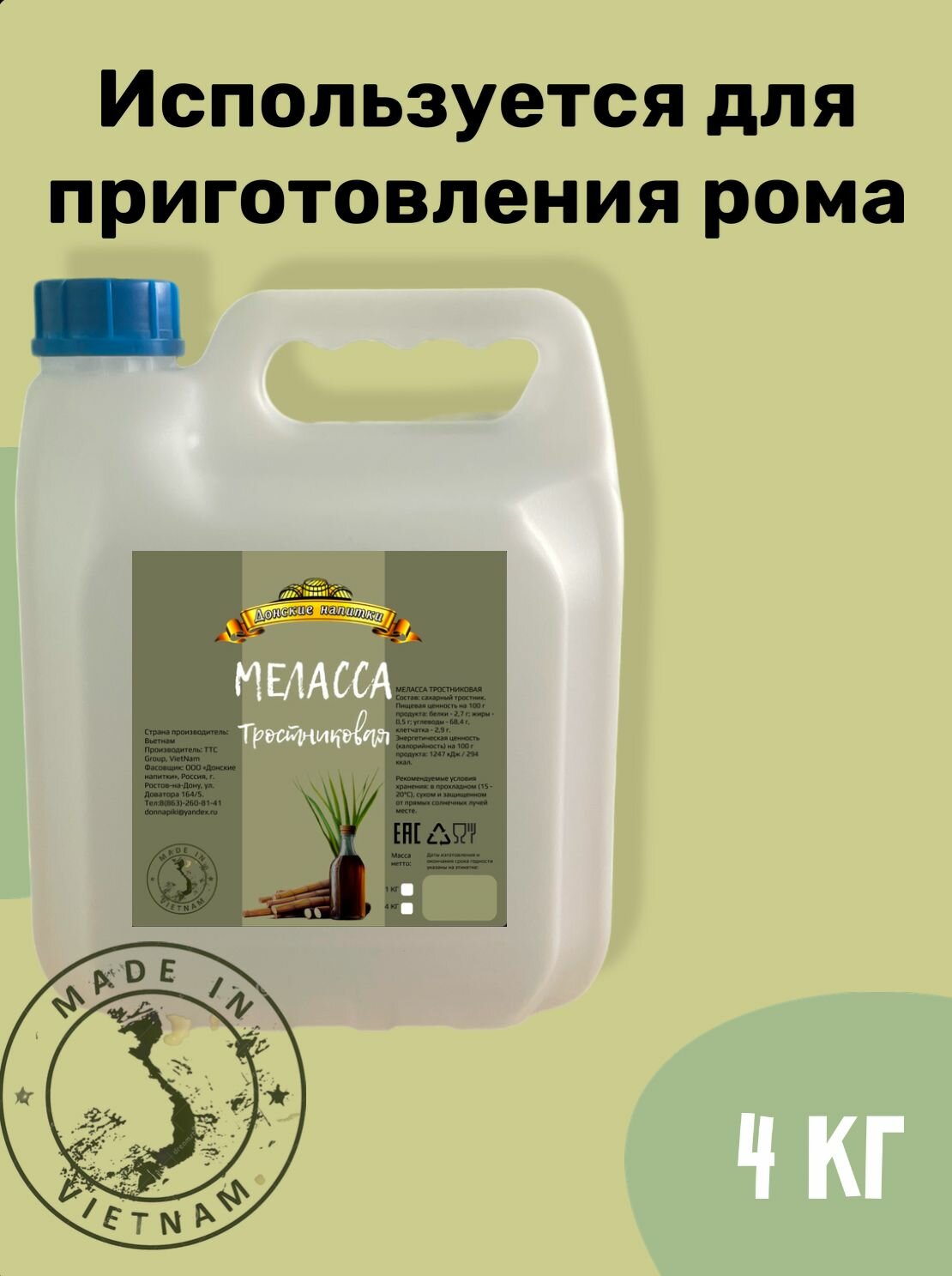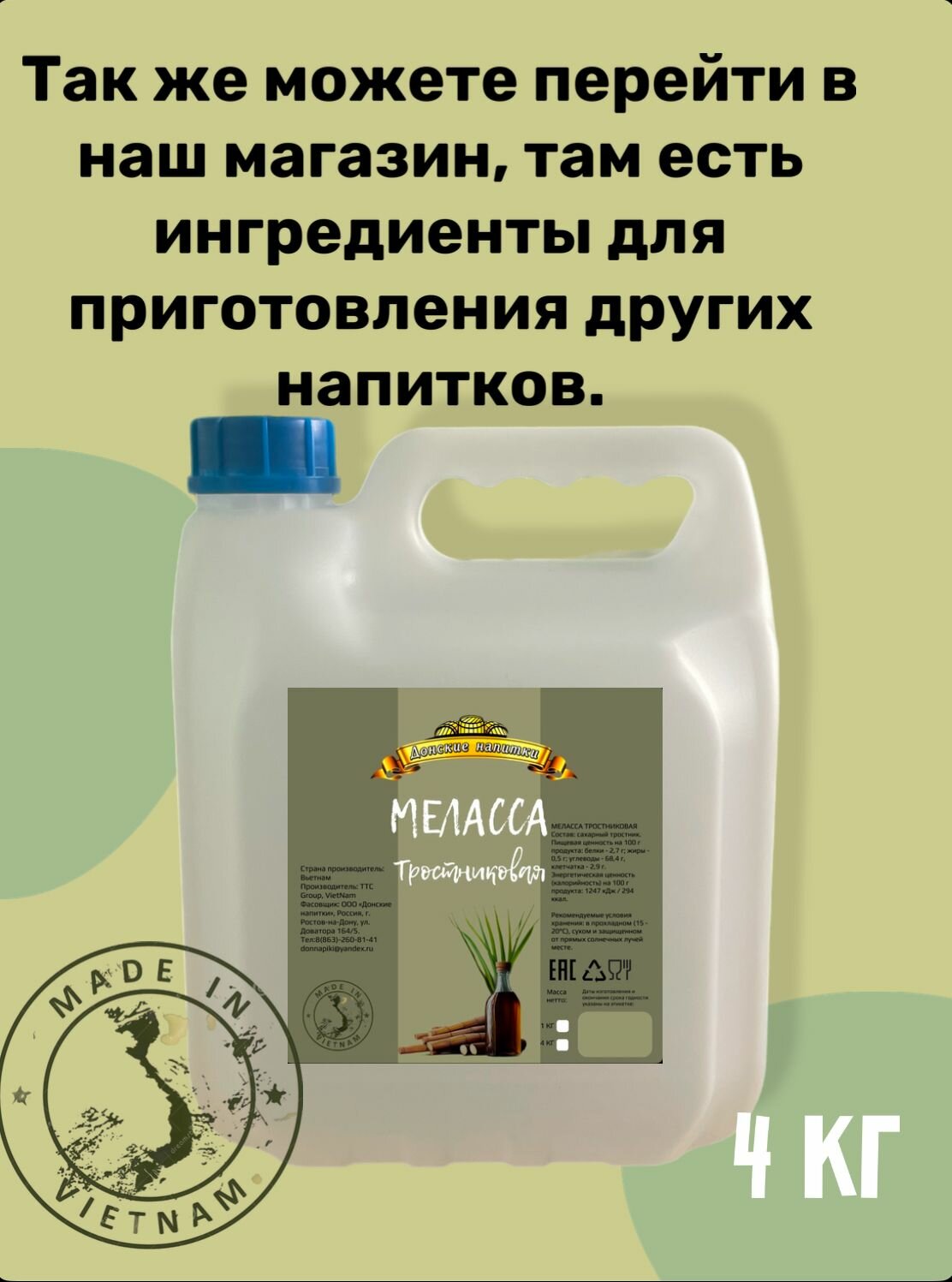 Меласса тростниковая Донские Напитки 4 КГ интересное: