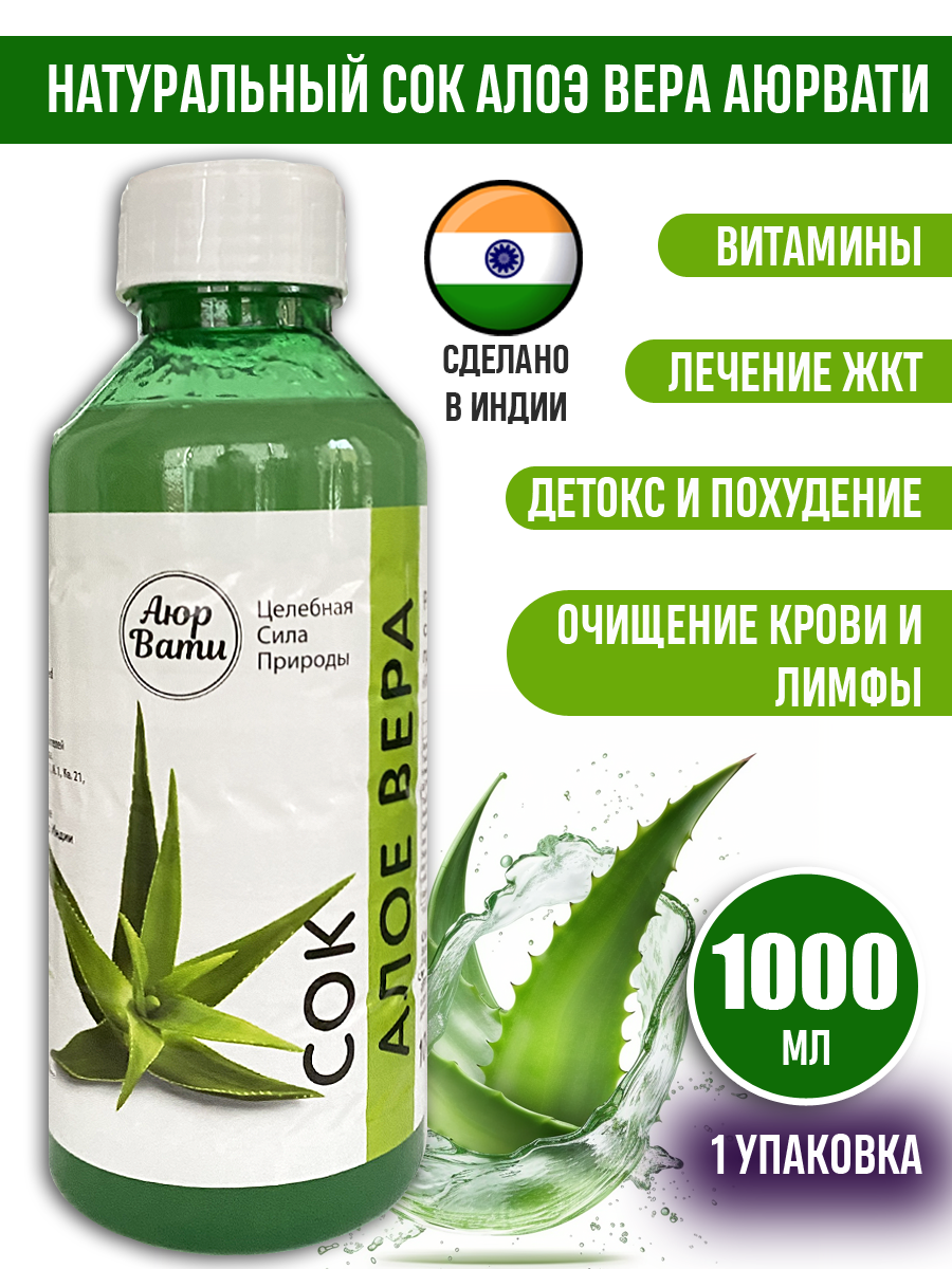 Сок Алоэ Аюрвати, Индия, 1л, без сахара, натуральный, концентрированный интересное:
