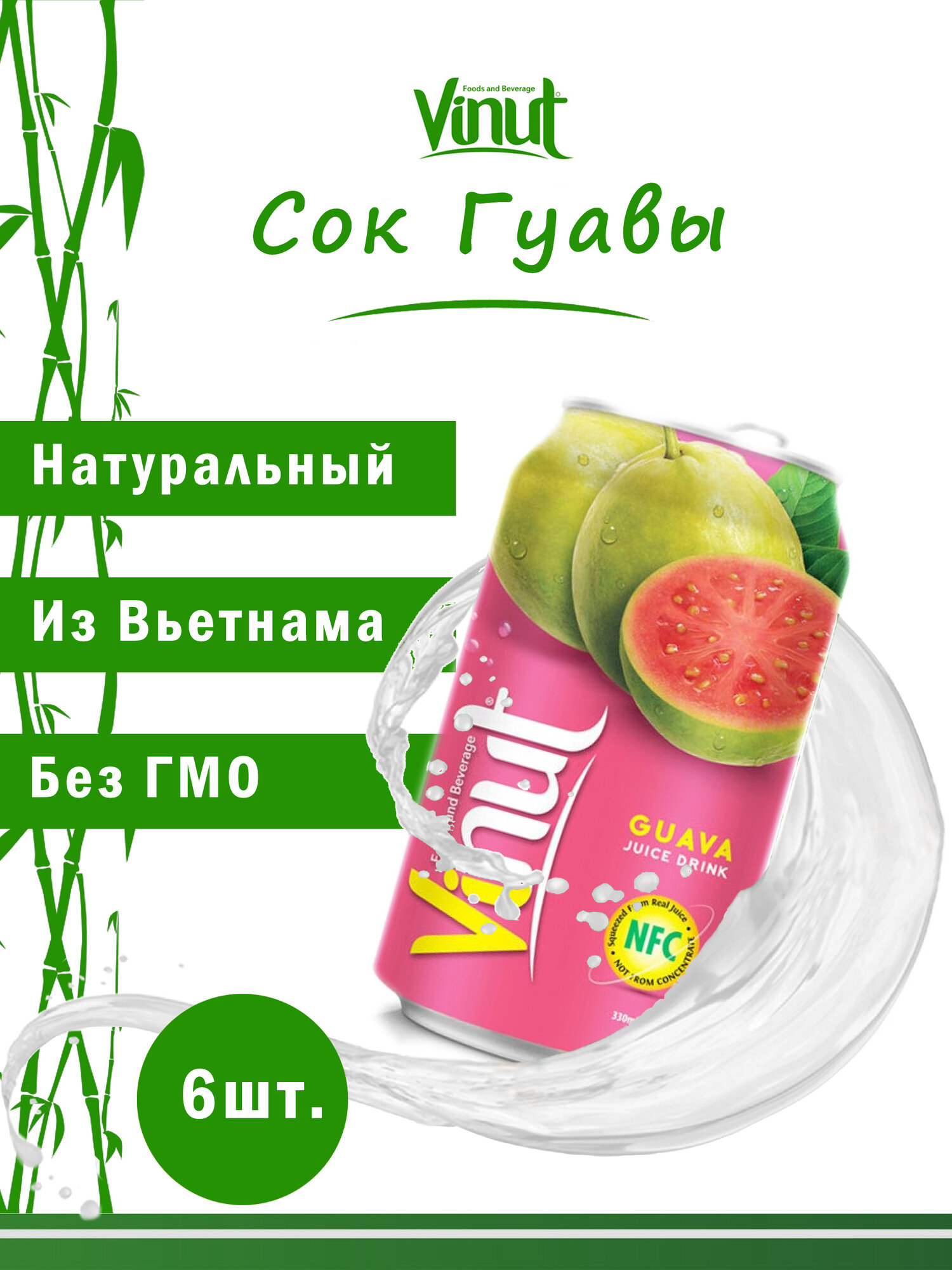 Купить Vinut Напиток сокосодержащий безалкогольный негазированный "Сок Розовой гуавы", 330мл, набор 6шт. экзотические фруктовые напитки