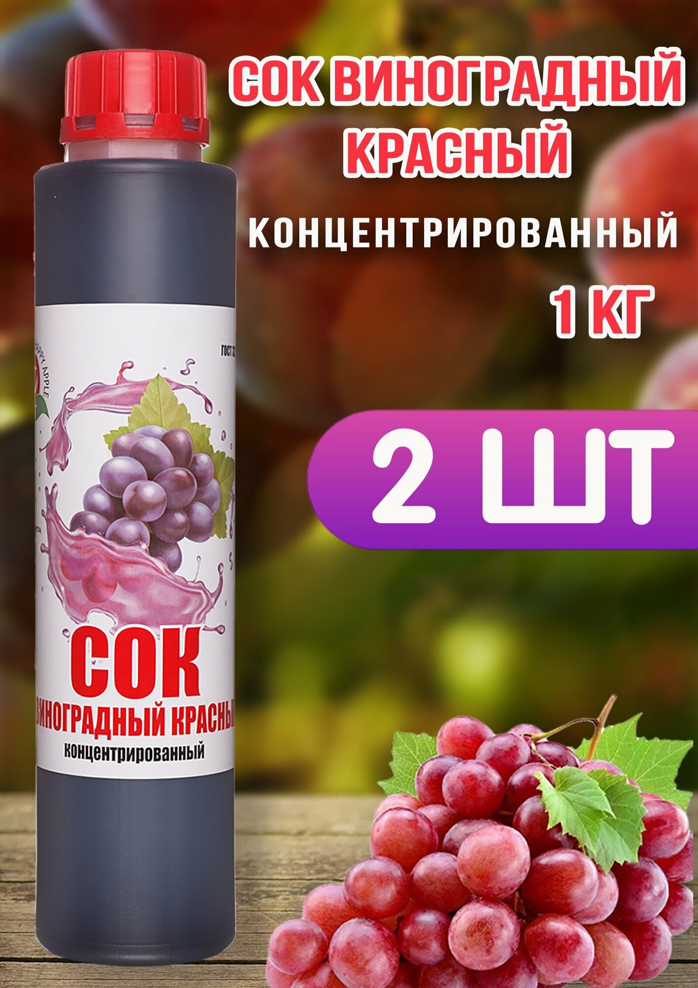 Купить Сок Виноградный Красный концентрированный Happy Apple 2 шт по 1 кг, без сахара