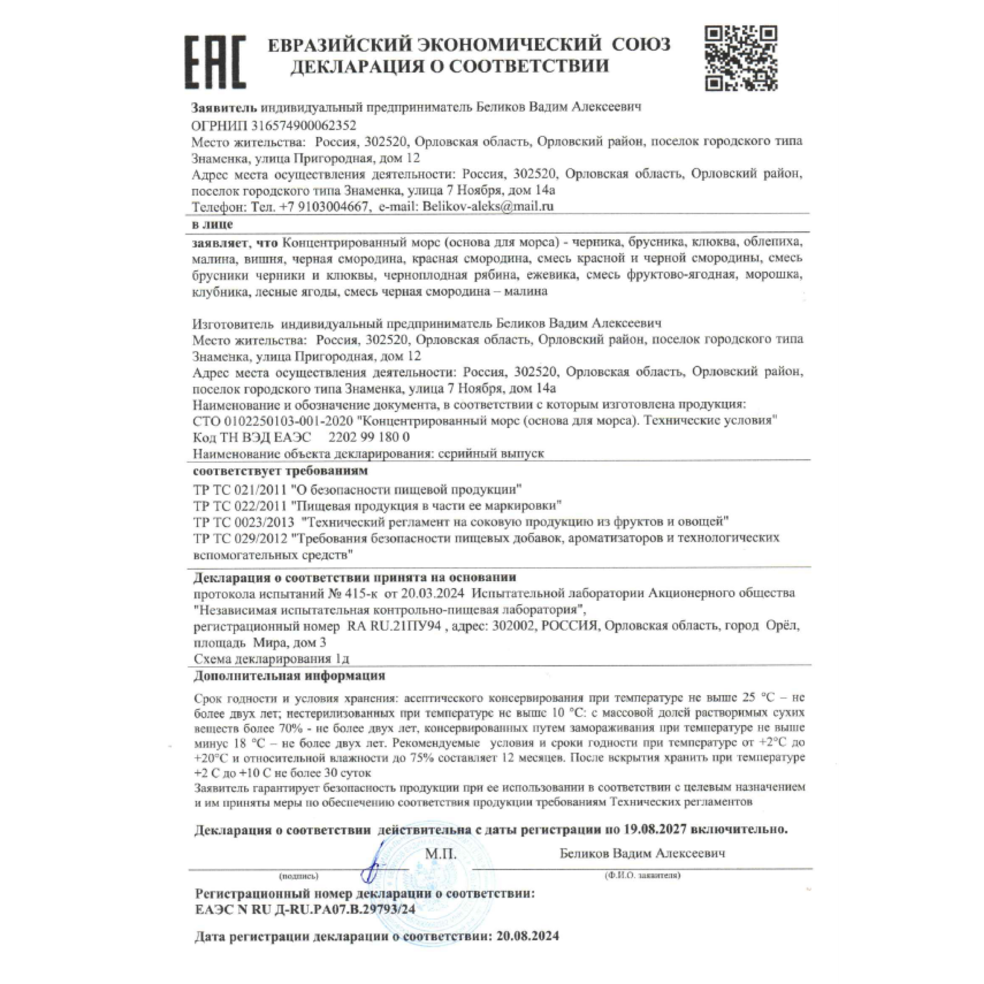 Напиток сокосодержащий Калинов Родник Морсовые ягоды Малина-ежевика-клюква, без сахара