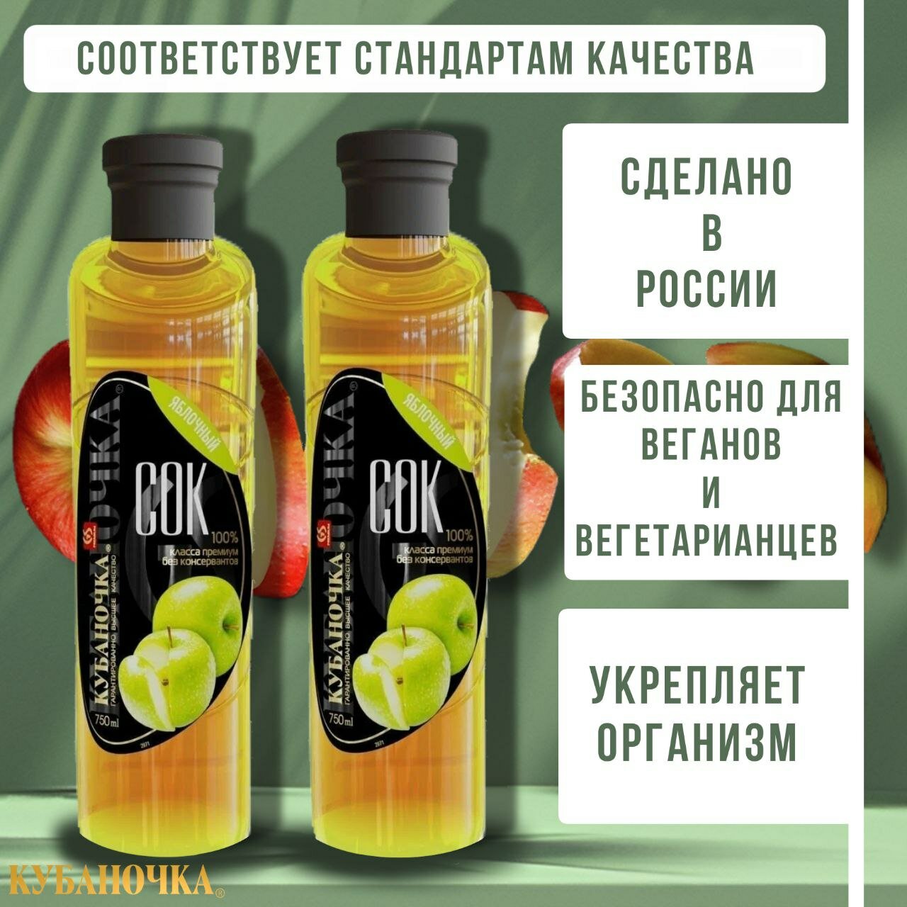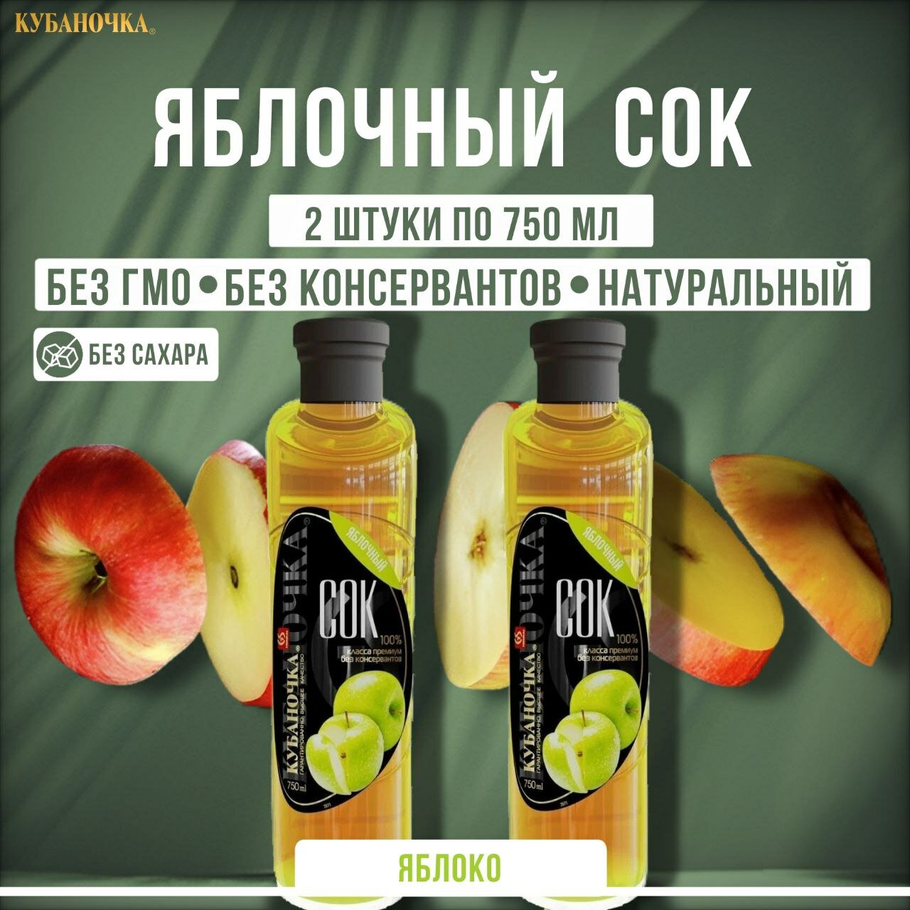 Сок Кубаночка Яблочный, без сахара, стерилизованный, 2 штуки по 750мл. интересное: