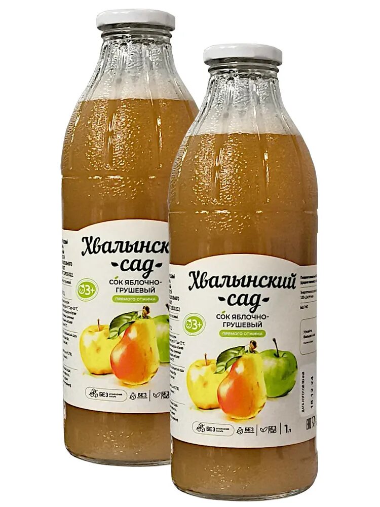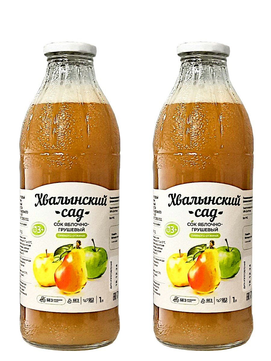 Купить Сок яблочно-грушевый без сахара, прямой отжим Хвалынский Сад, 1л * 2шт.