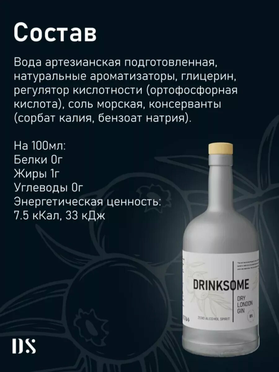 СохранитьБезалкогольный джин Drinksome "Dry London", для коктейлей, 0.7л, без сахара интересное:
