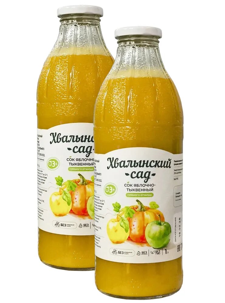 Купить Сок яблочно-тыквенный без сахара, прямой отжим Хвалынский Сад, 1л*2шт.