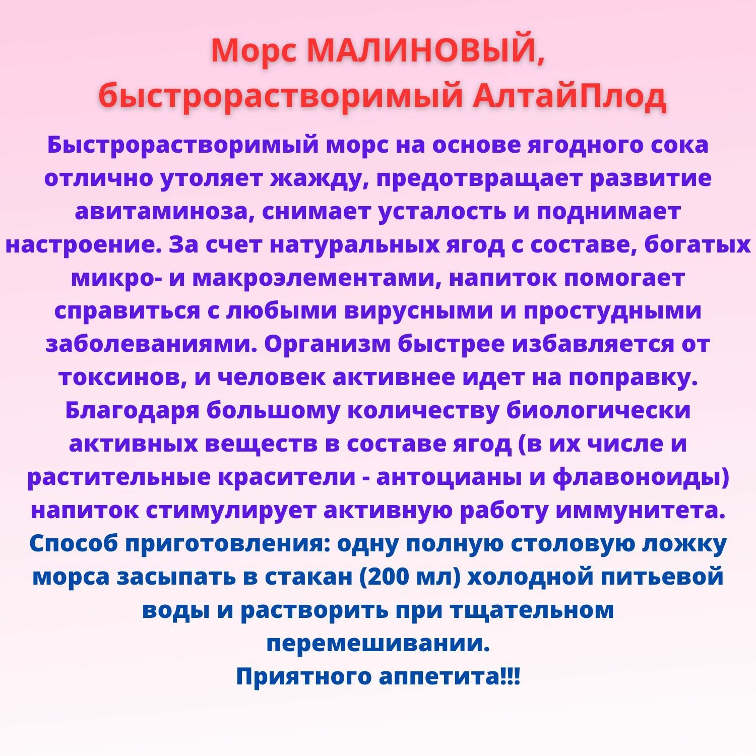Морс малиновый, быстрорастворимый 500 грамм АлтайПлод интересное: