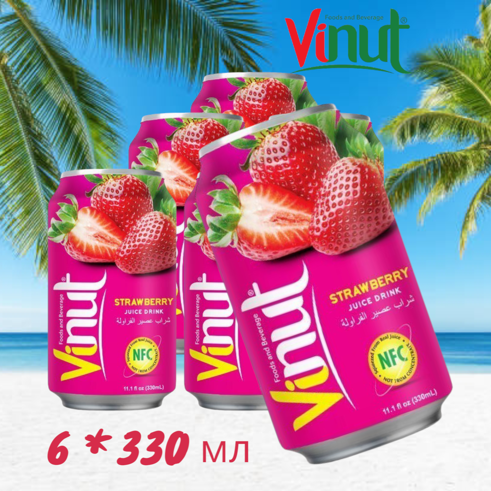 Купить Напиток негазированный с соком Vinut Клубника, 6 шт * 330 мл, Вьетнам