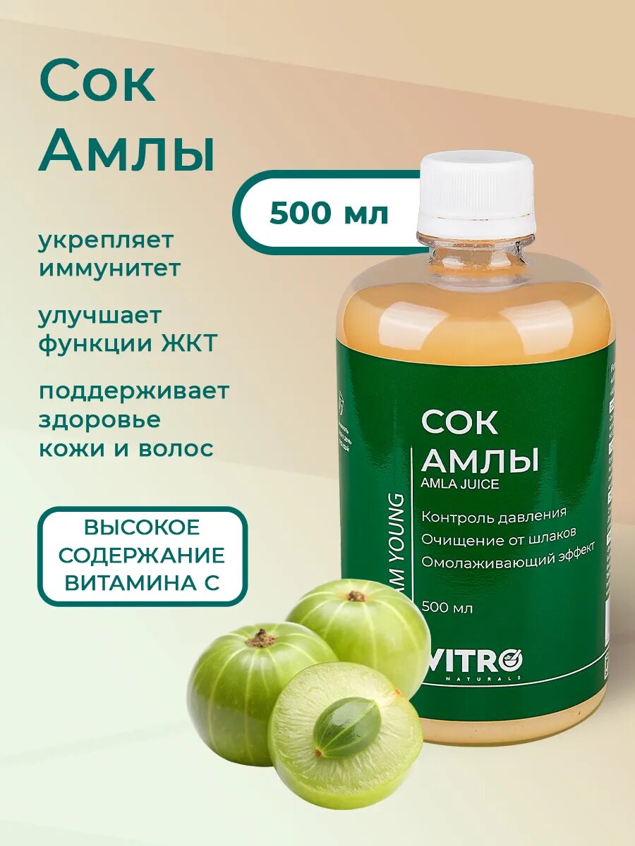 Купить Напиток сокосодержащий Амлы 500 мл иммунитет, улучшает пищеварение, молодость Vitro Naturals