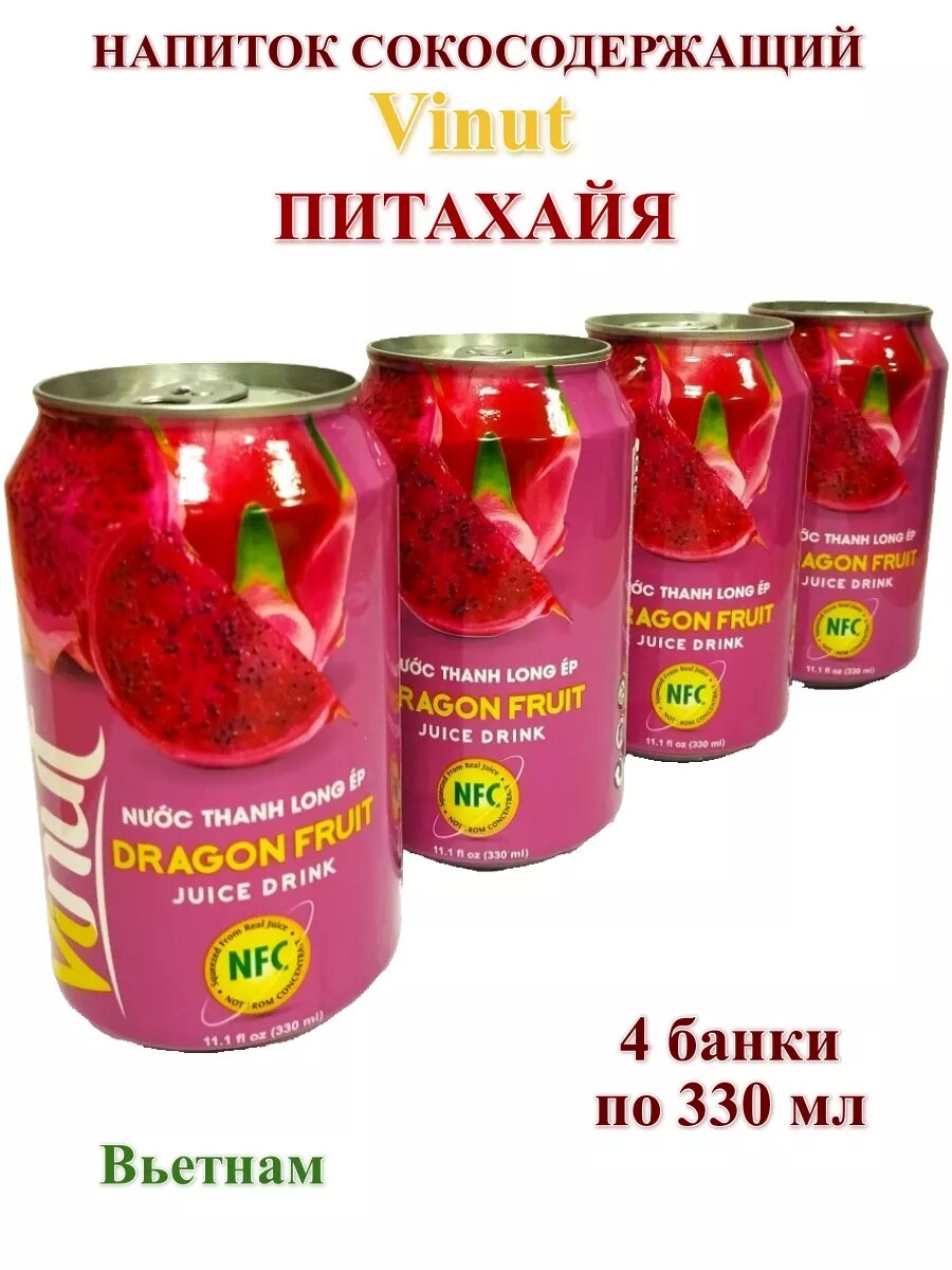 Напиток сокосодержащий Vinut Драгонфрут, 4 банки интересное:
