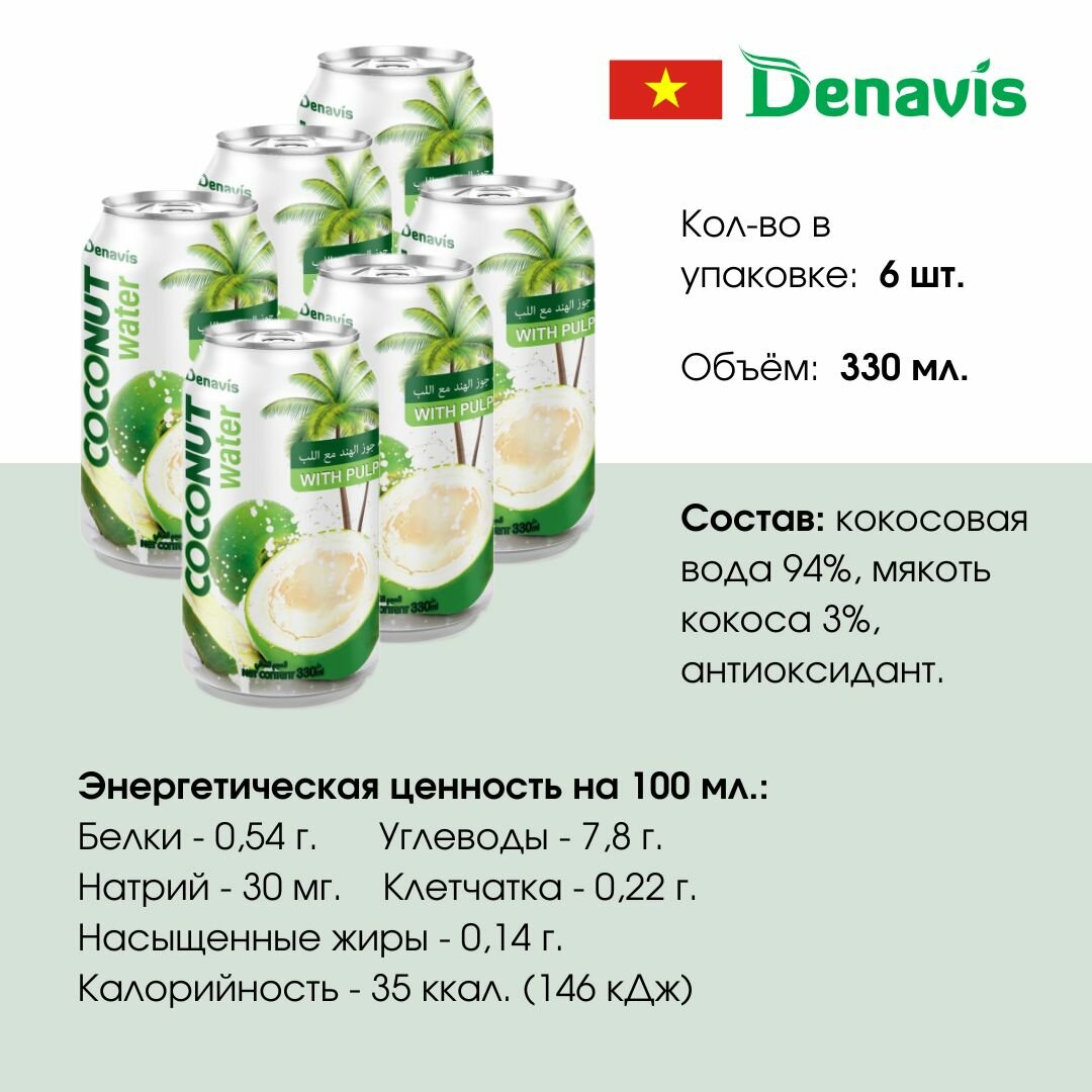 Кокосовая вода с мякотью Denavis, без сахара (Вьетнам) 330 мл. 6 шт. интересное: