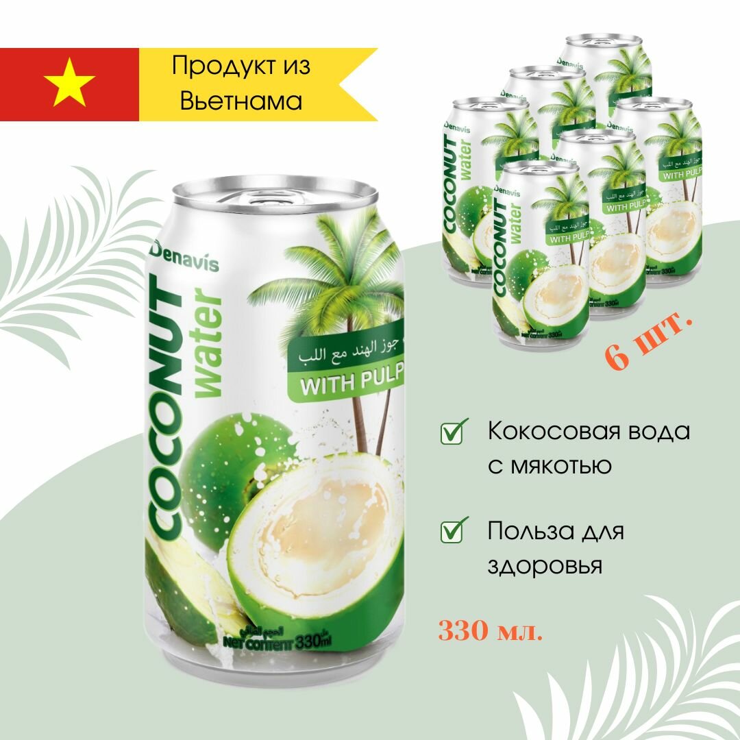 Купить Кокосовая вода с мякотью Denavis, без сахара (Вьетнам) 330 мл. 6 шт.