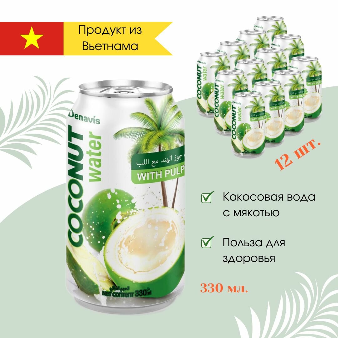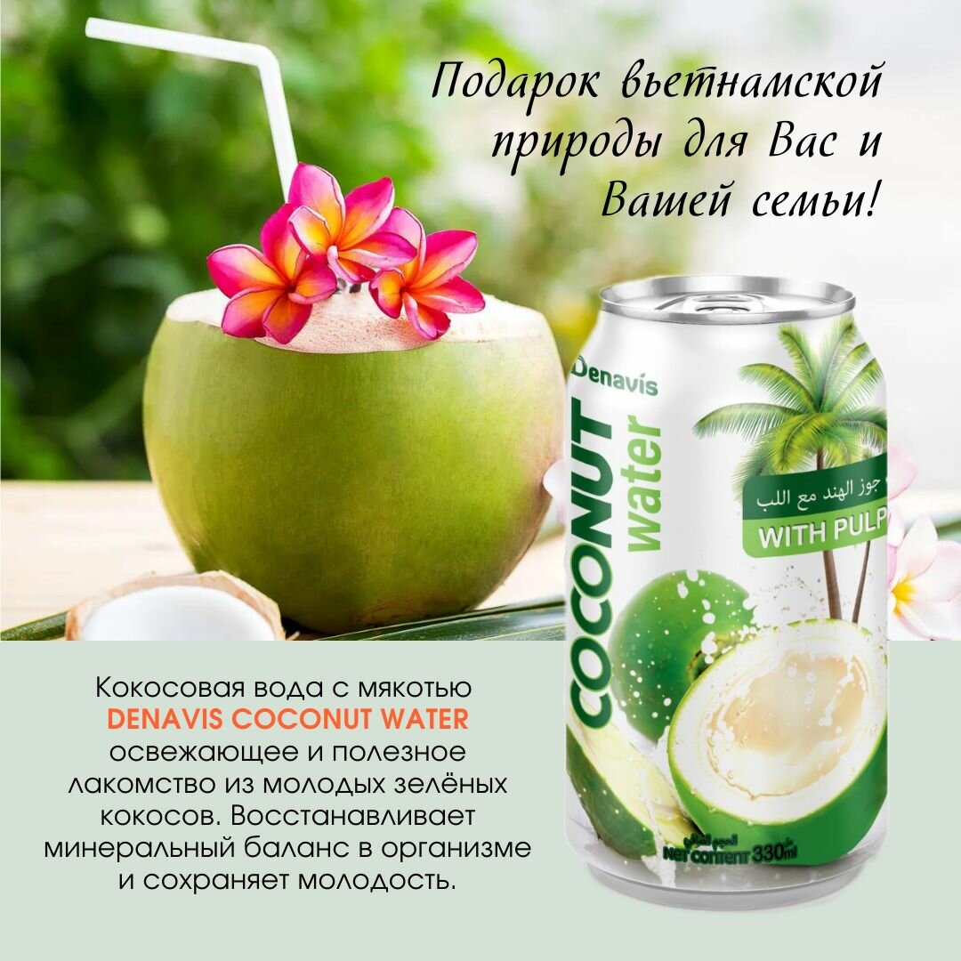 Кокосовая вода с мякотью Denavis из Вьетнама, без сахара 330 мл. 12 шт. интересное: