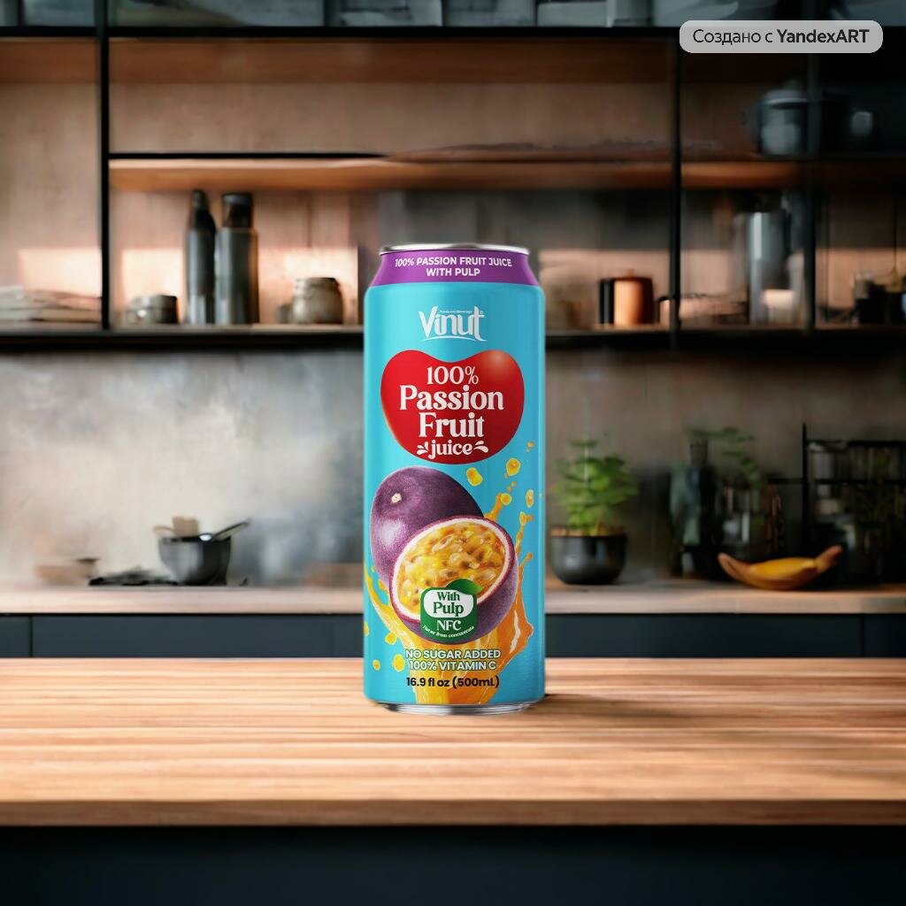 Купить Сок прямого отжима VINUT 100% PASSION FRUIT with PULP (Винут Маракуя с Мякотью) 0,5л 6шт