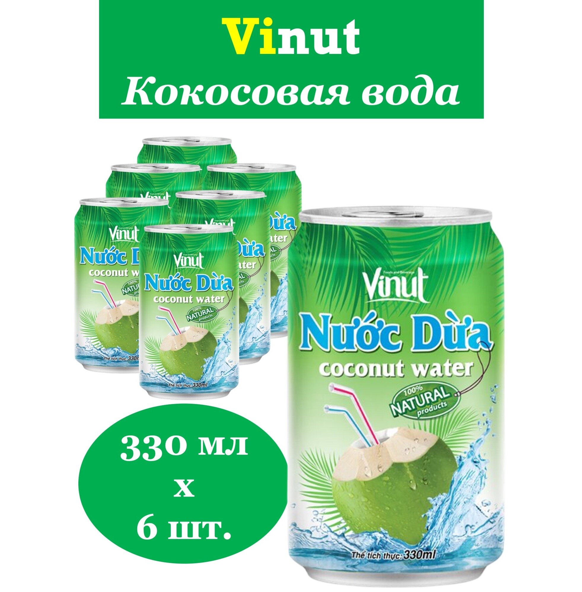 Купить Напиток сокосодержащий ViNut (ВиНут) Кокосовая вода Оригинал 0,33 л x 6 банок