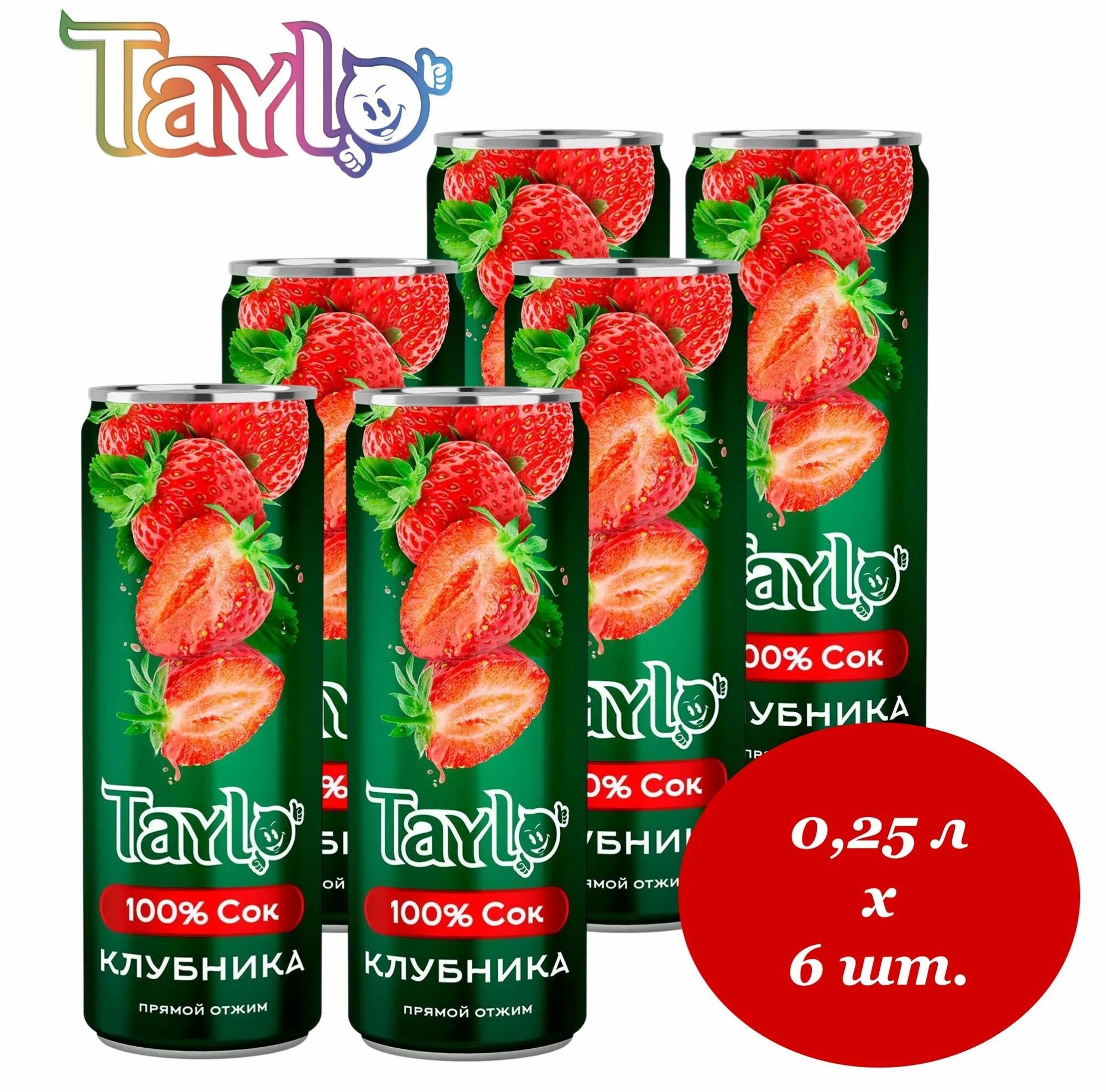 Купить Сок Taylo прямого отжима Клубника 0,25 л х 6 банок,100% натуральный