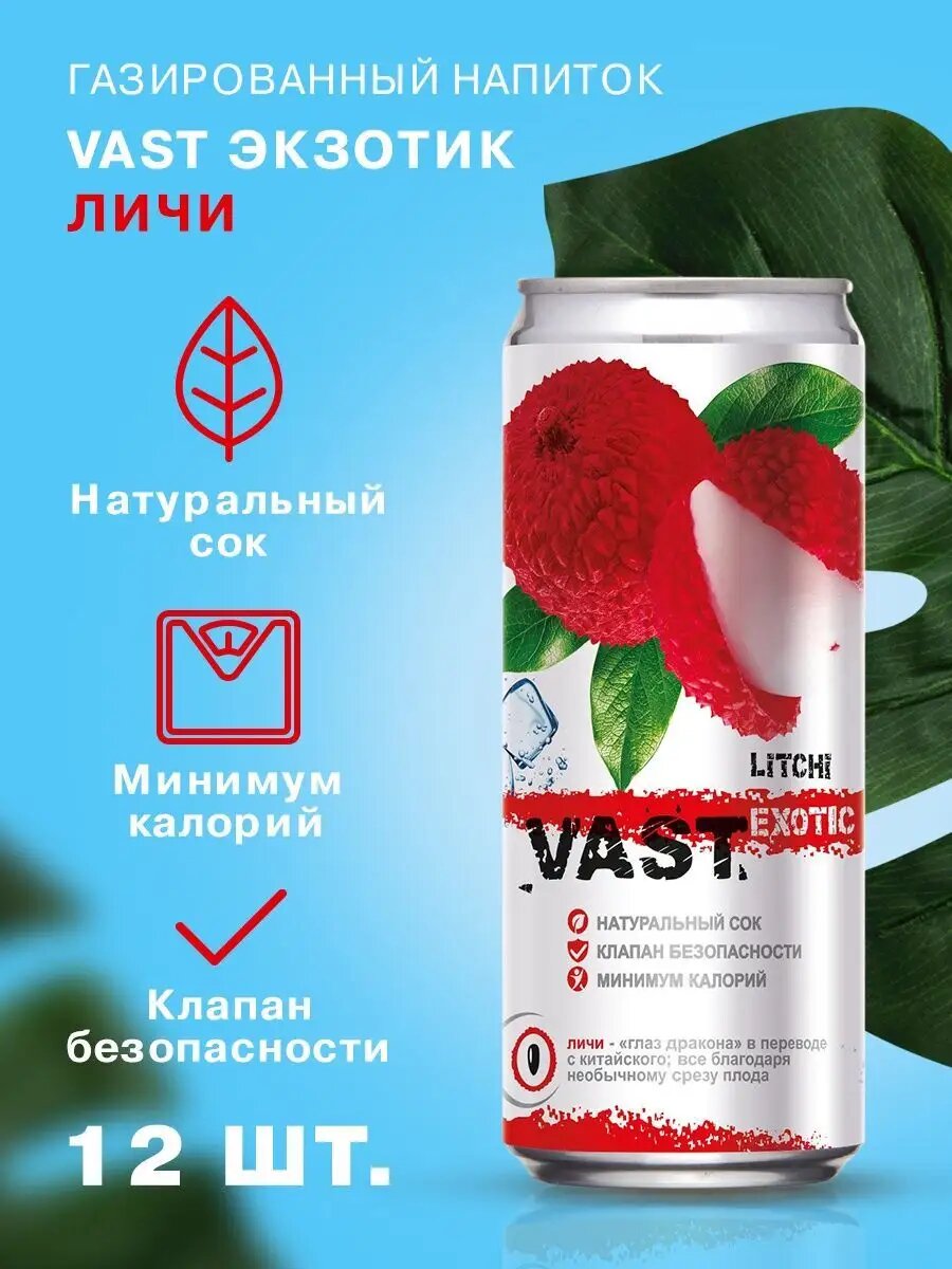 Низкокалорийный сокосодержащий напиток VAST Экзотик 0,33 Личи, 12 шт. интересное: