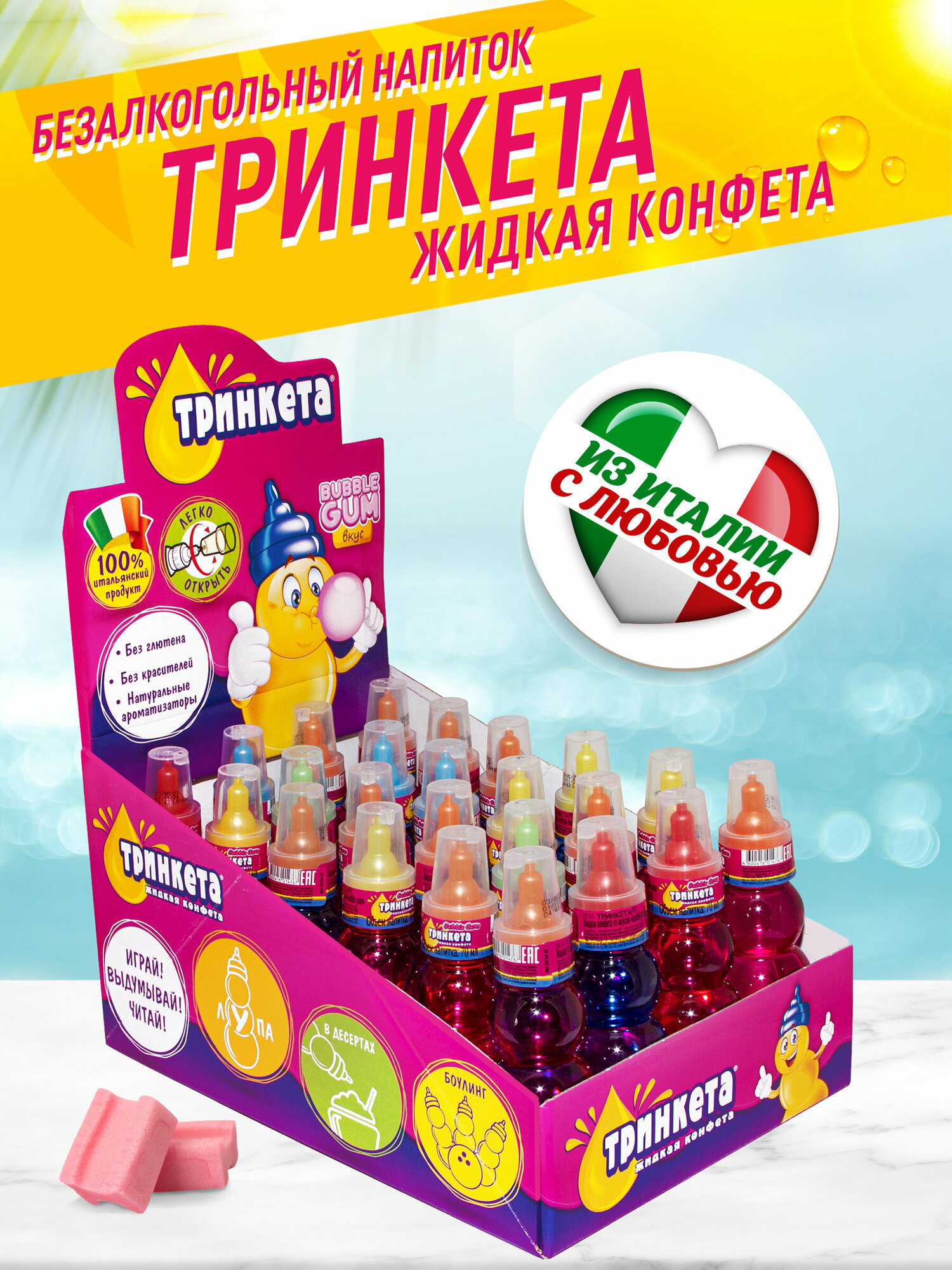 Тринкета безалкогольный напиток жидкая конфета со вкусом Бабл гам, 24 шт интересное: