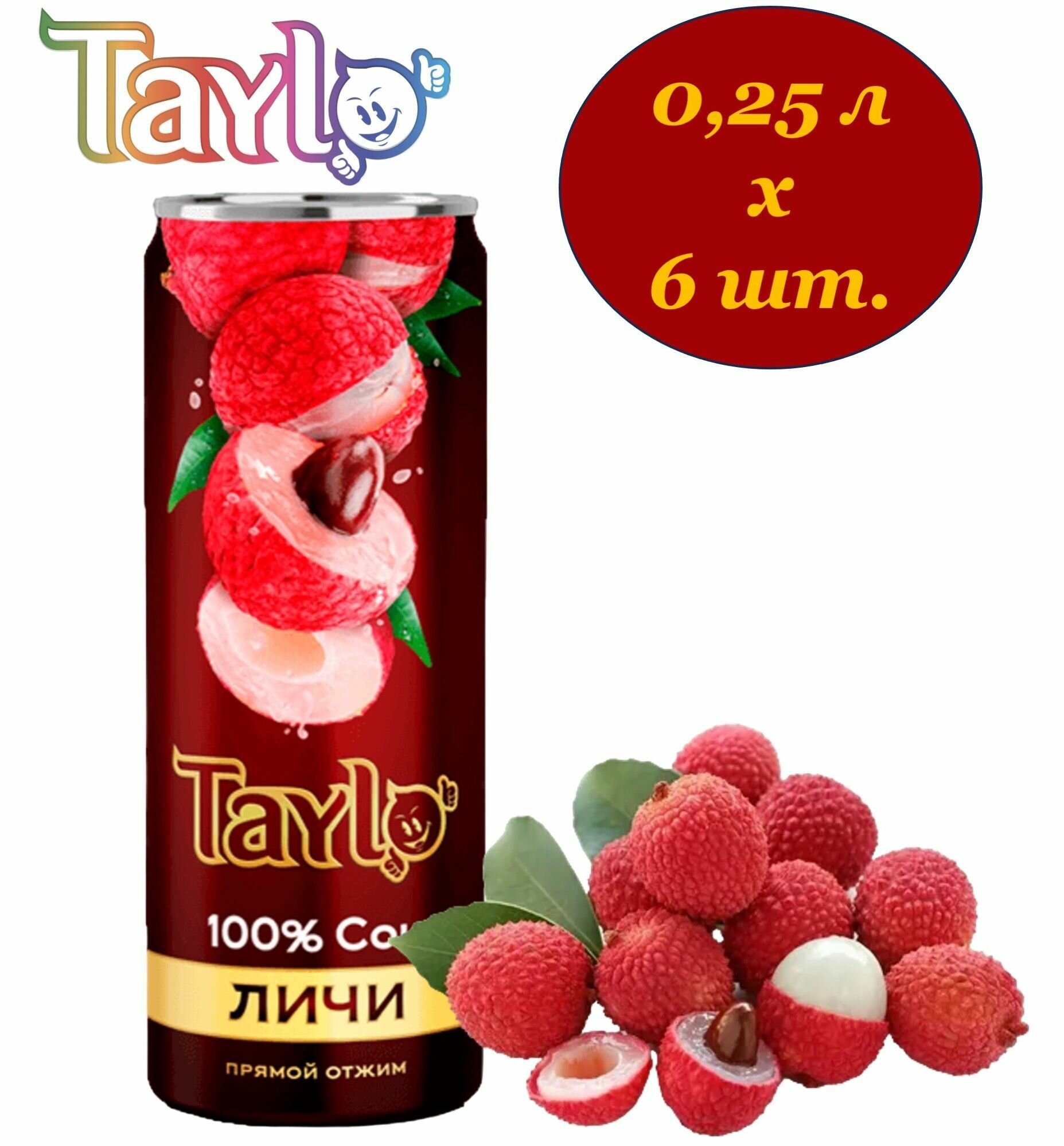 Купить Сок Taylo Личи прямого отжима 0,25 л х 6 банок, без воды, сахара, красителей и консервантов