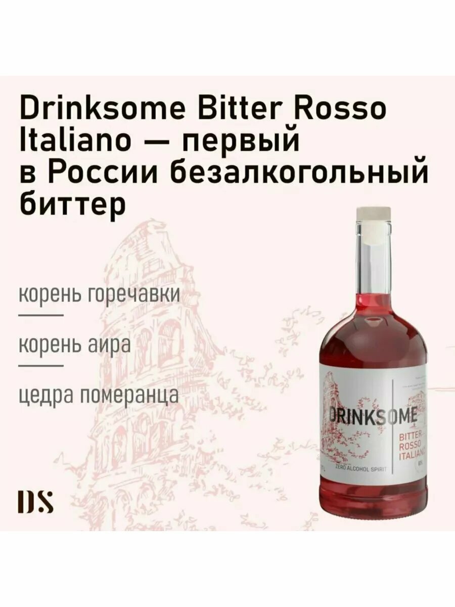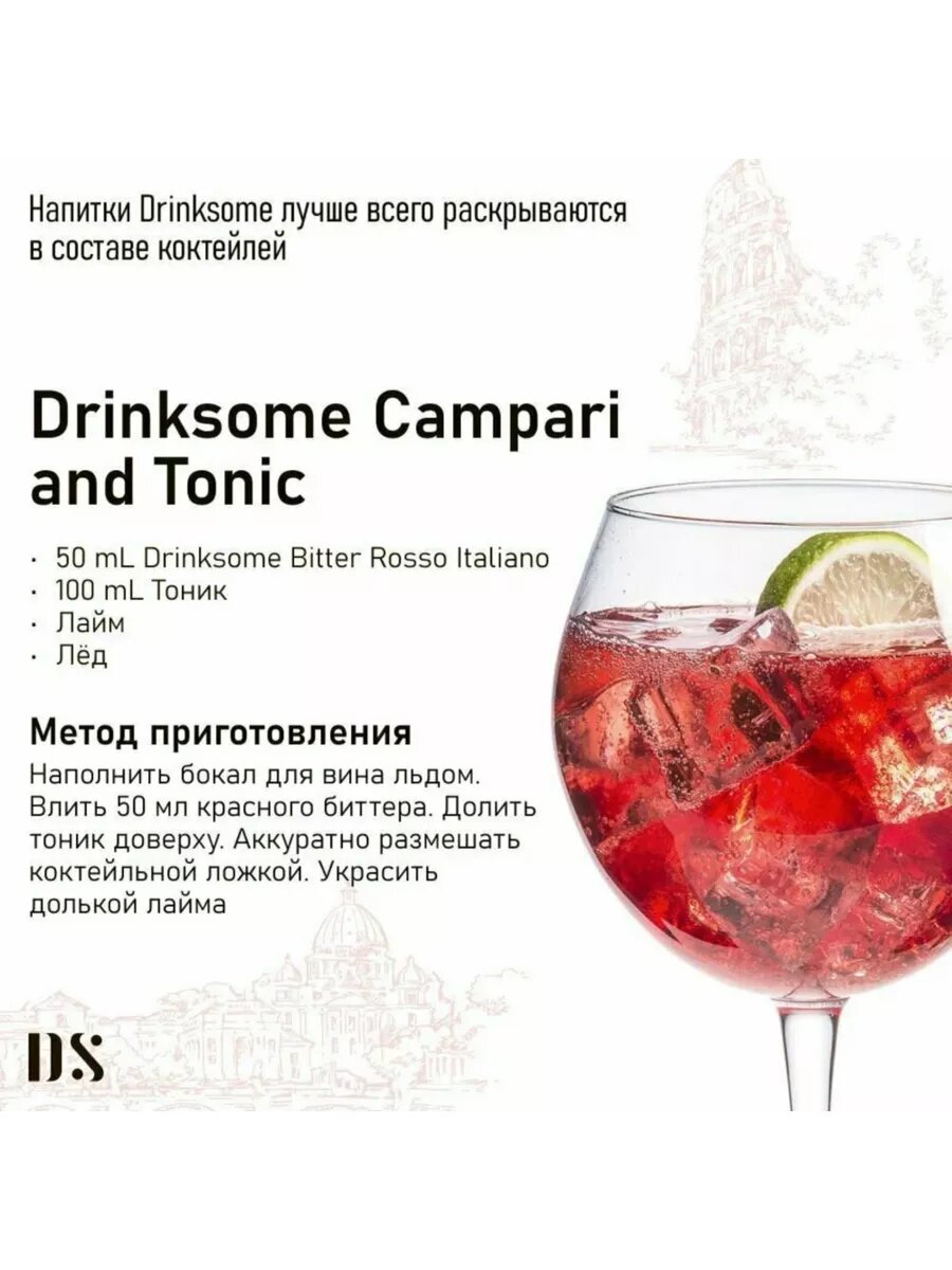 Основа для коктейлей Drinksome Bitter Rosso, без ГМО и глютена, стеклянная бутылка, 0,7 л интересное: