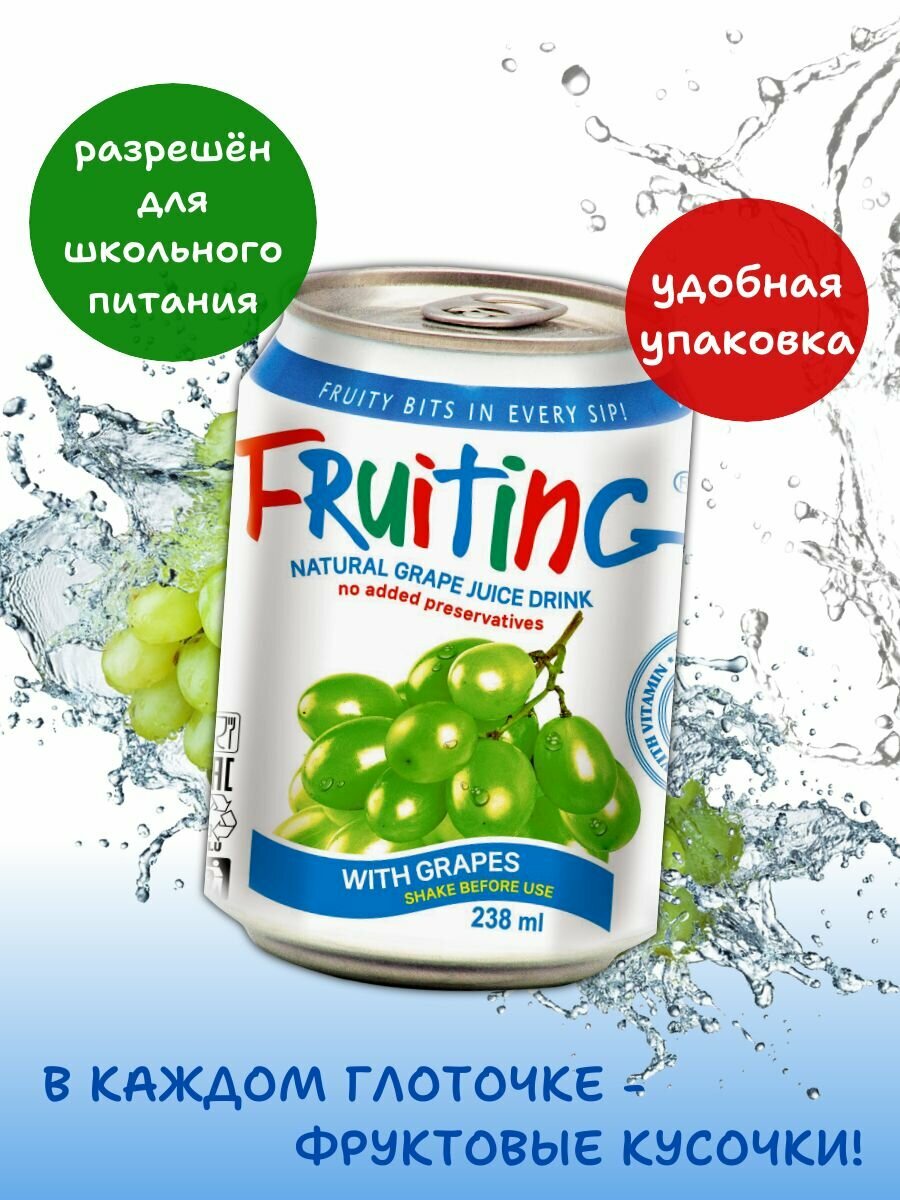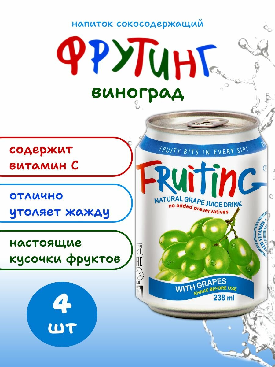 Купить Напиток из виноградного сока Фрутинг с кусочками винограда и витамином С, без газа, 4 шт*238 мл