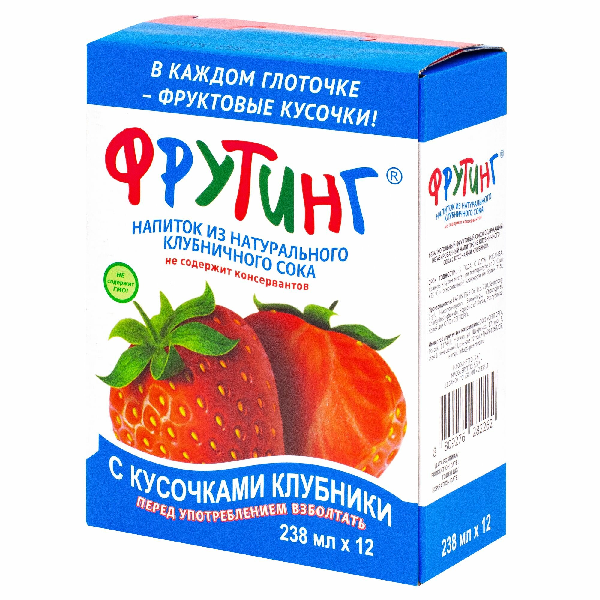 Купить Напиток из сока клубники Фрутинг с кусочками настоящей клубники и витамином С, без газа,12 шт*238 мл
