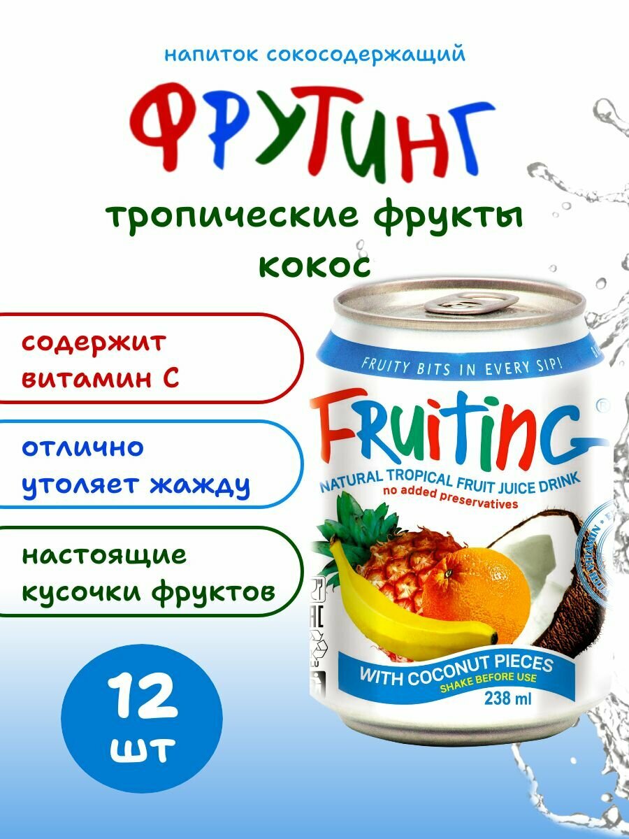 Ниже Вы можете прочитать отзывы на Напиток из сока тропических фруктов Фрутинг с кусочками кокоса и витамином С, без газа, 12 шт*238 мл, ознакомится с подробными характеристиками, посмотреть интересные обзоры и фотографии на Напиток из сока тропических фруктов Фрутинг с кусочками кокоса и витамином С, без газа, 12 шт*238 мл.