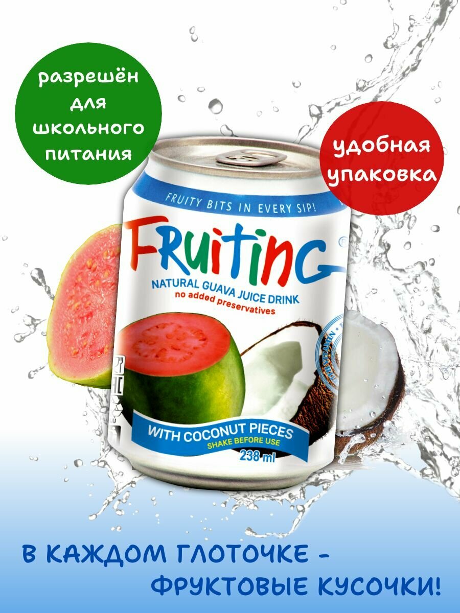 Напиток из сока гуавы Фрутинг с кусочками кокоса и витамином С, без газа, 6 шт*238 мл