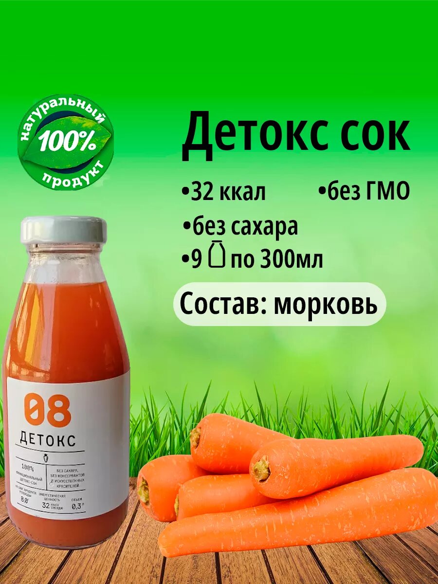 Купить Сок детокс без сахара №08 натуральный морковь 9 шт по 0.3 л