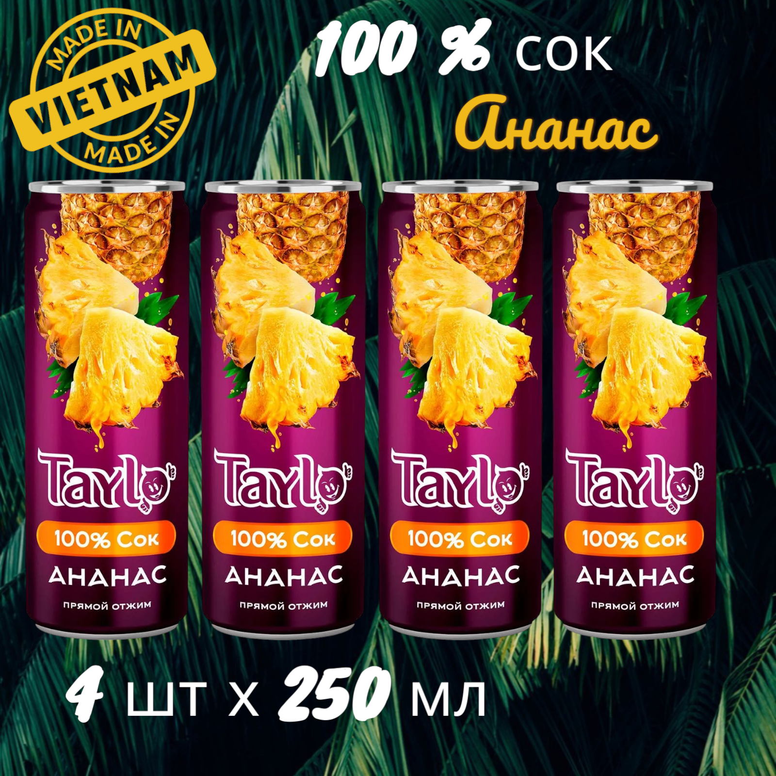 Купить Сок прямого отжима 100 % Тайло Сок Ананас (Taylo), 4 штуки по 250 мл, Вьетнам