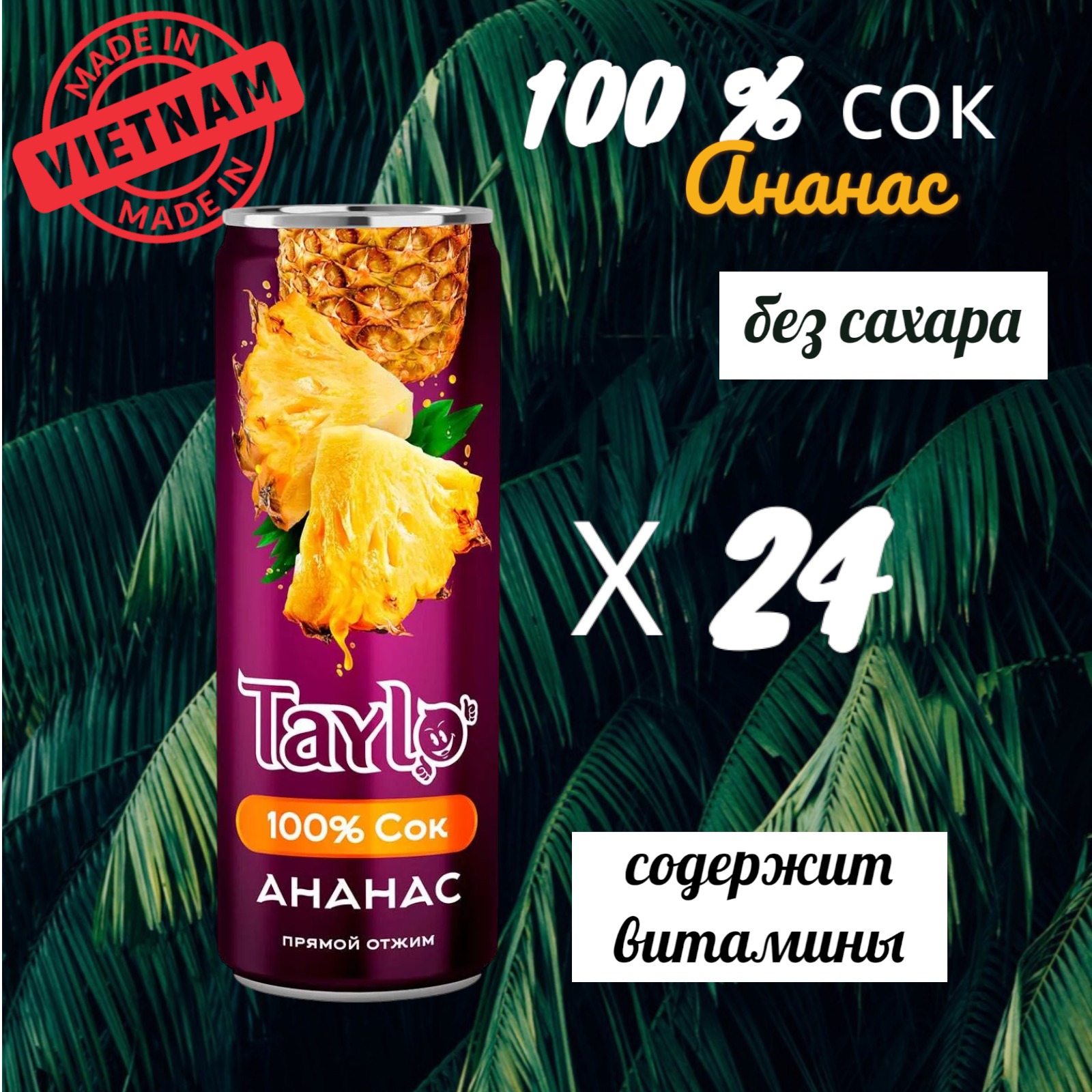 Купить Сок прямого отжима 100 % Тайло Сок Ананас (Taylo), 24 штуки по 250 мл, Вьетнам