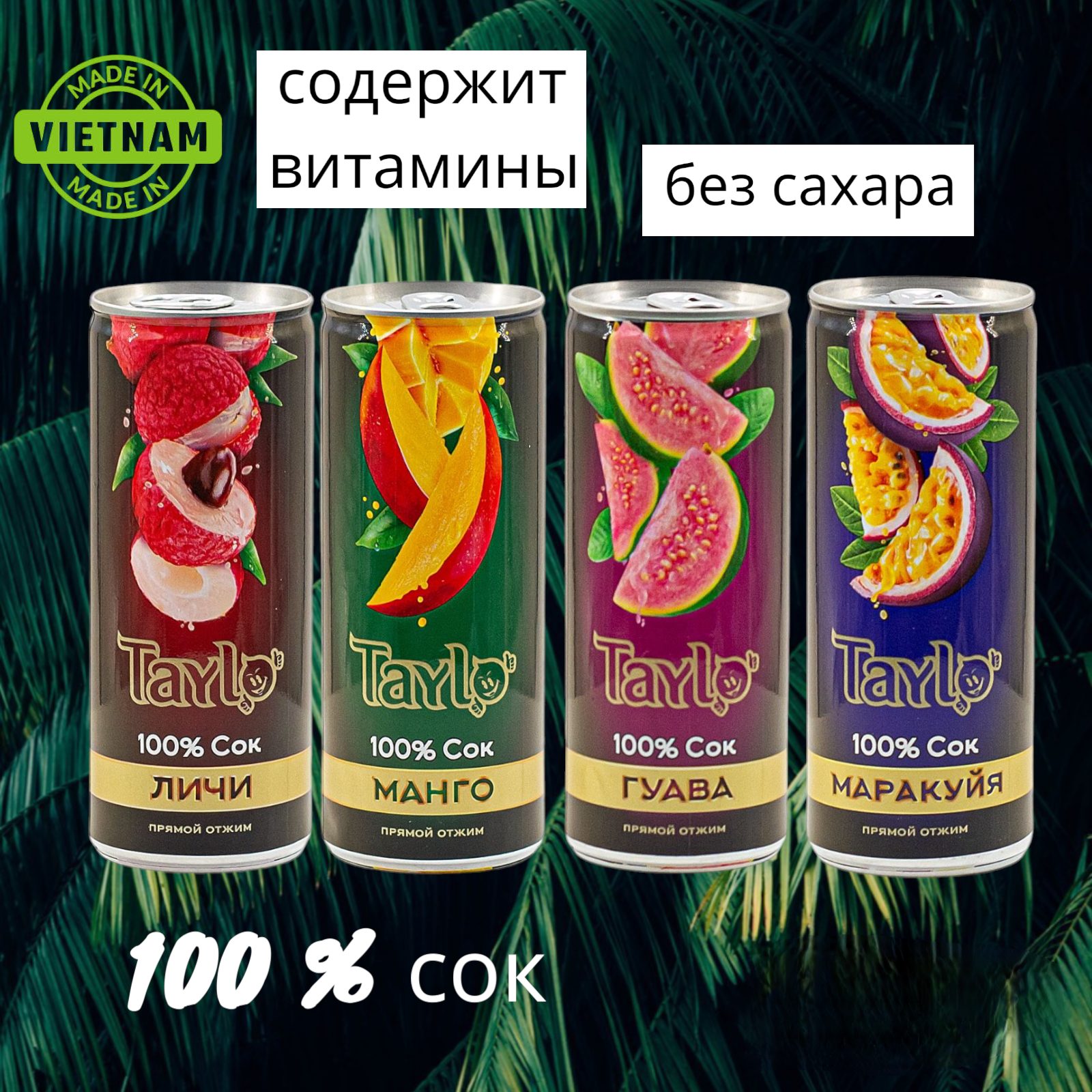 "Тайло Сок Мандарина, Личи, Маракуйи, Гуавы", 100%, сок прямого отжима, Вьетнам