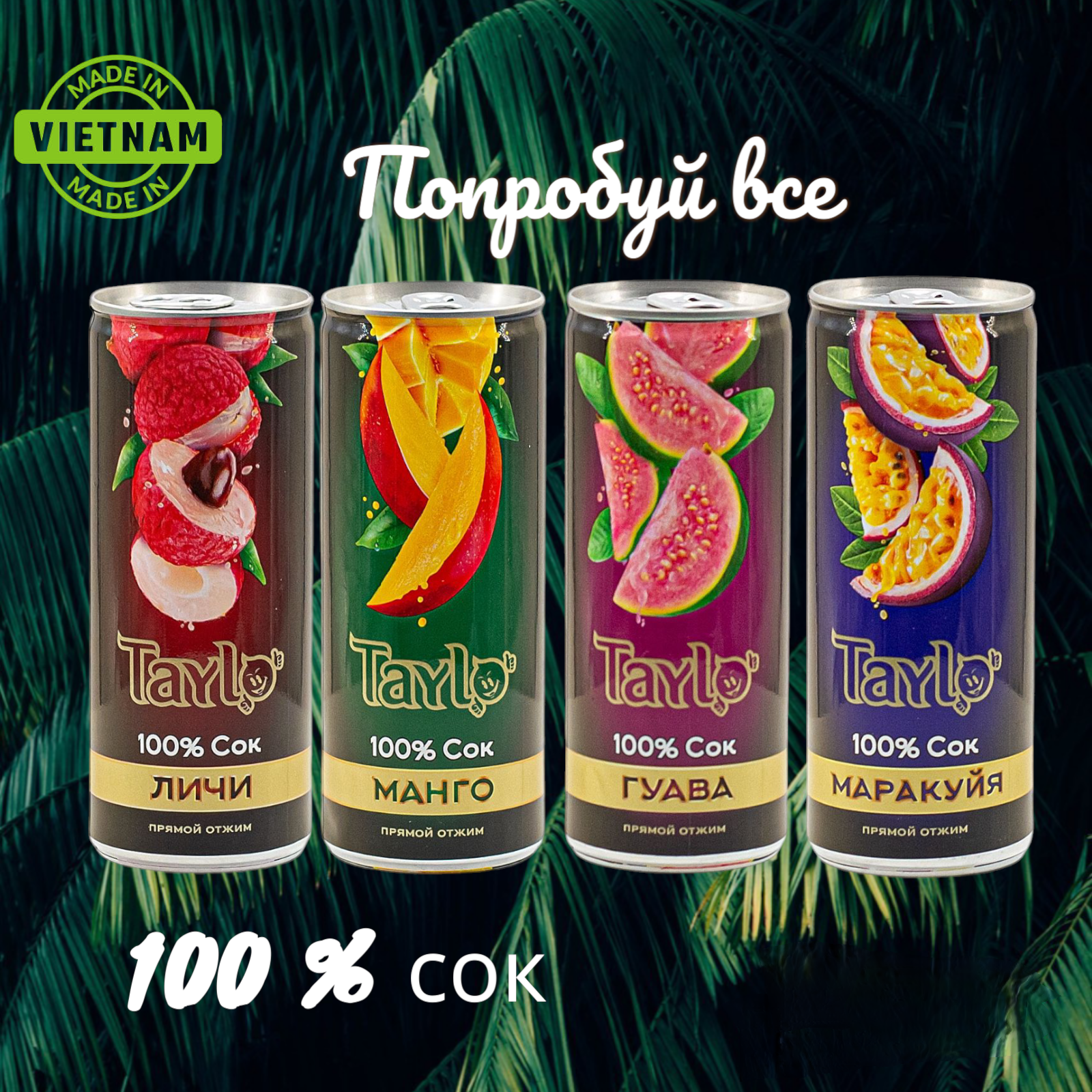 "Тайло Сок Мандарина, Личи, Маракуйи, Гуавы", 100%, сок прямого отжима, Вьетнам