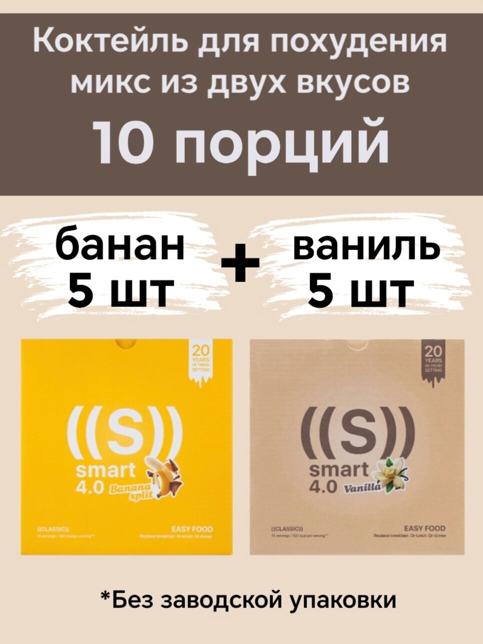 Купить Протеиновый коктейль для похудения 10 порций микс из двух вкусов банан 5 шт и ваниль 5 шт