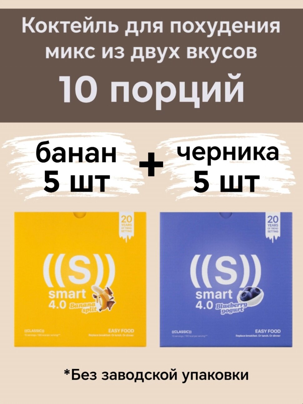 Купить Протеиновый коктейль для похудения 10 порций микс из двух вкусов банан 5 шт и черника 5 шт