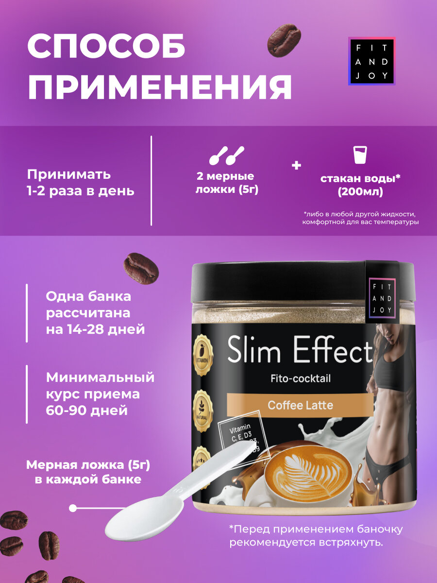 Белковый коктейль для снижения аппетита с таурином без сахара для быстрого похудения Fit and Joy, вкус кофе латте