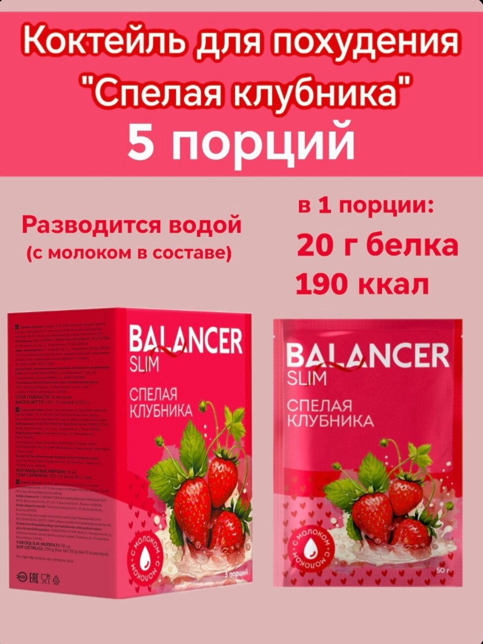 Коктейль для похудения со вкусом «Спелая клубника», 5 саше интересное: