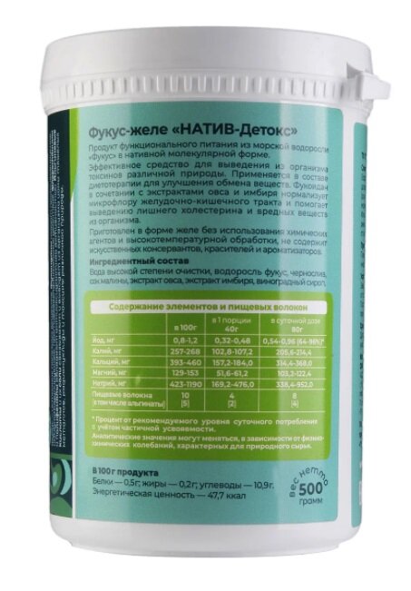 Натив-Детокс, NativBio, продукт здорового питания, фукус, без сахара, 1 шт - 500г интересное:
