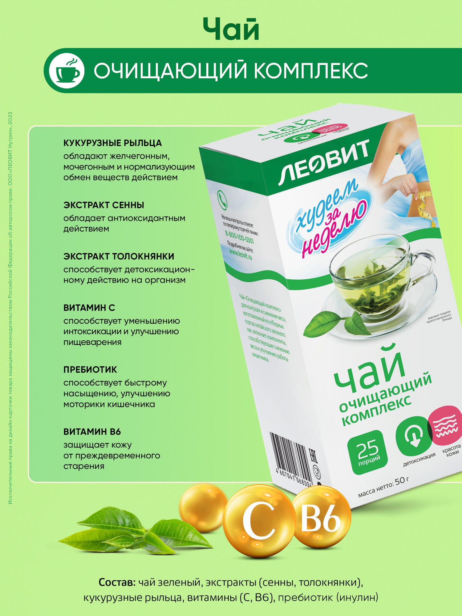 Чай «леовит» Худеем за неделю жиросжигающий комплекс, 50 г