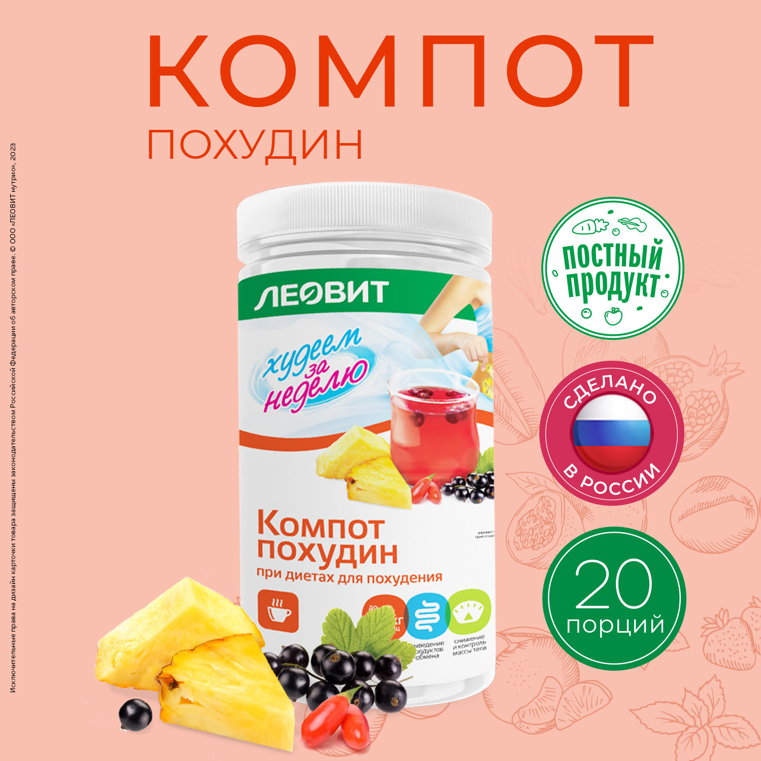 Купить Диетический компот Похудин ЛЕОВИТ Худеем за неделю быстрого приготовления Банка 400 г