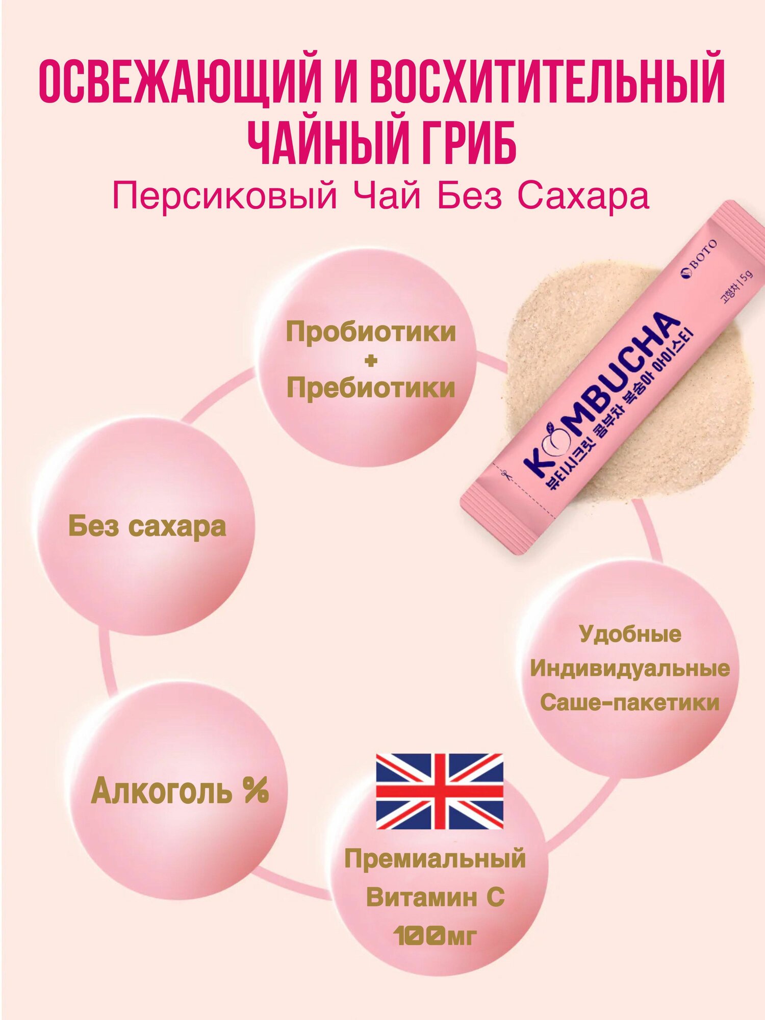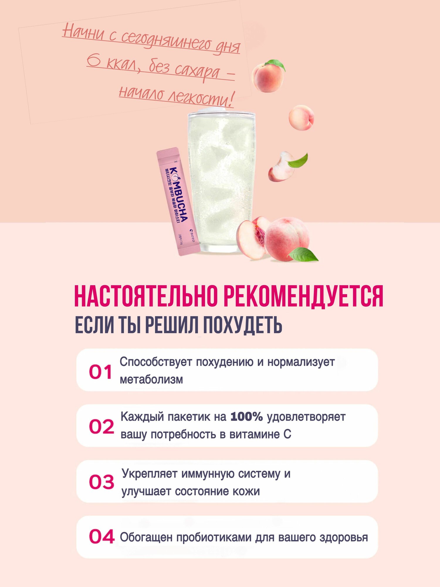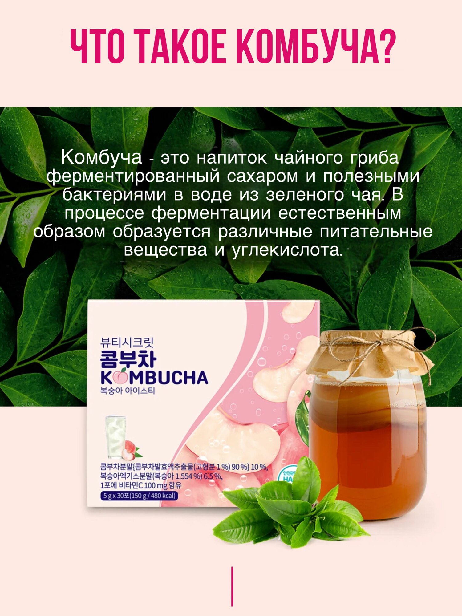 Комбуча, чайный гриб со вкусом персика, диетический напиток, лимонад, свежесть 30 саше, Корея интересное: