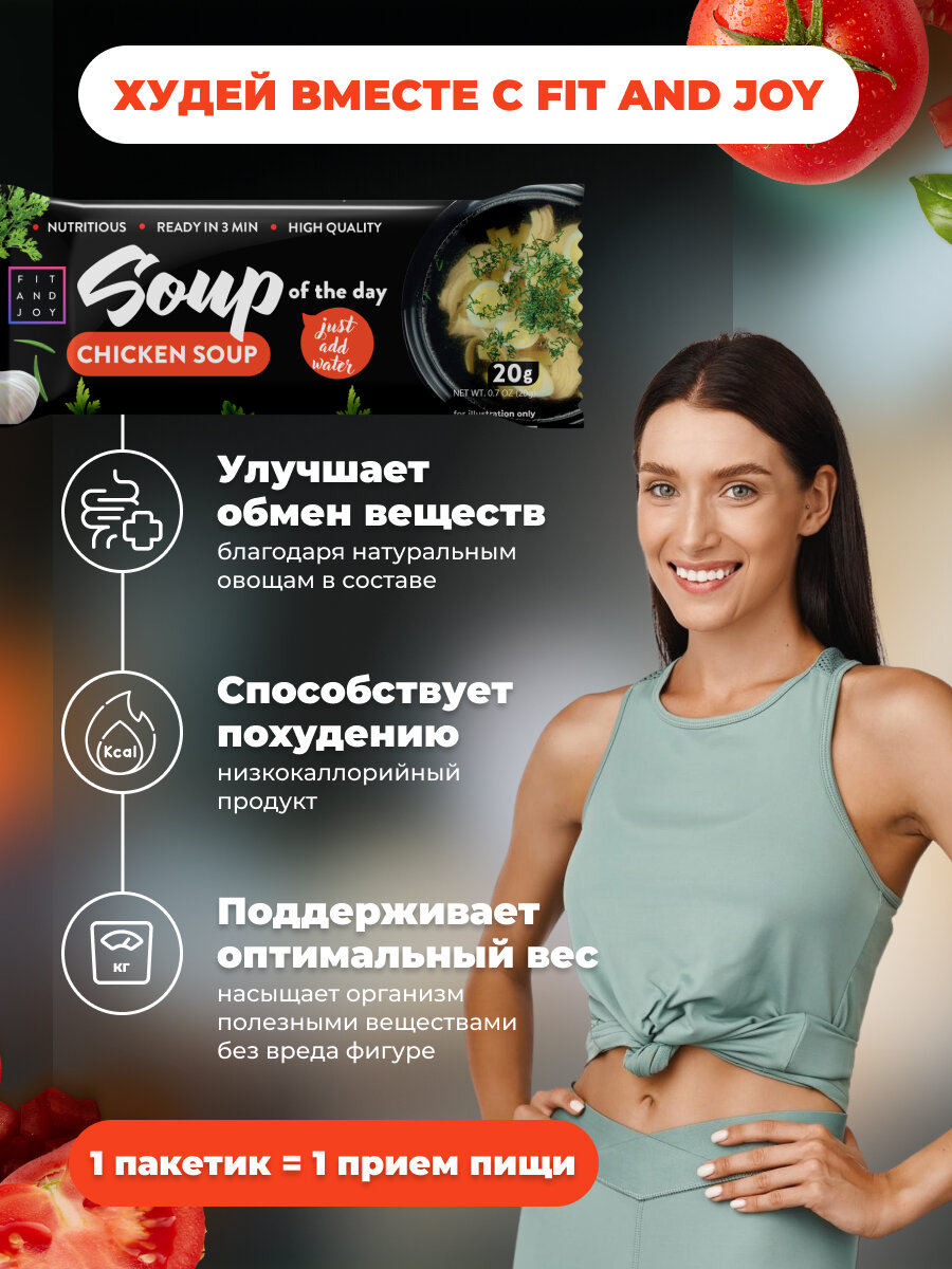 Суп быстрого приготовления в пакете без варки куриный Fit and Joy 16 порций
