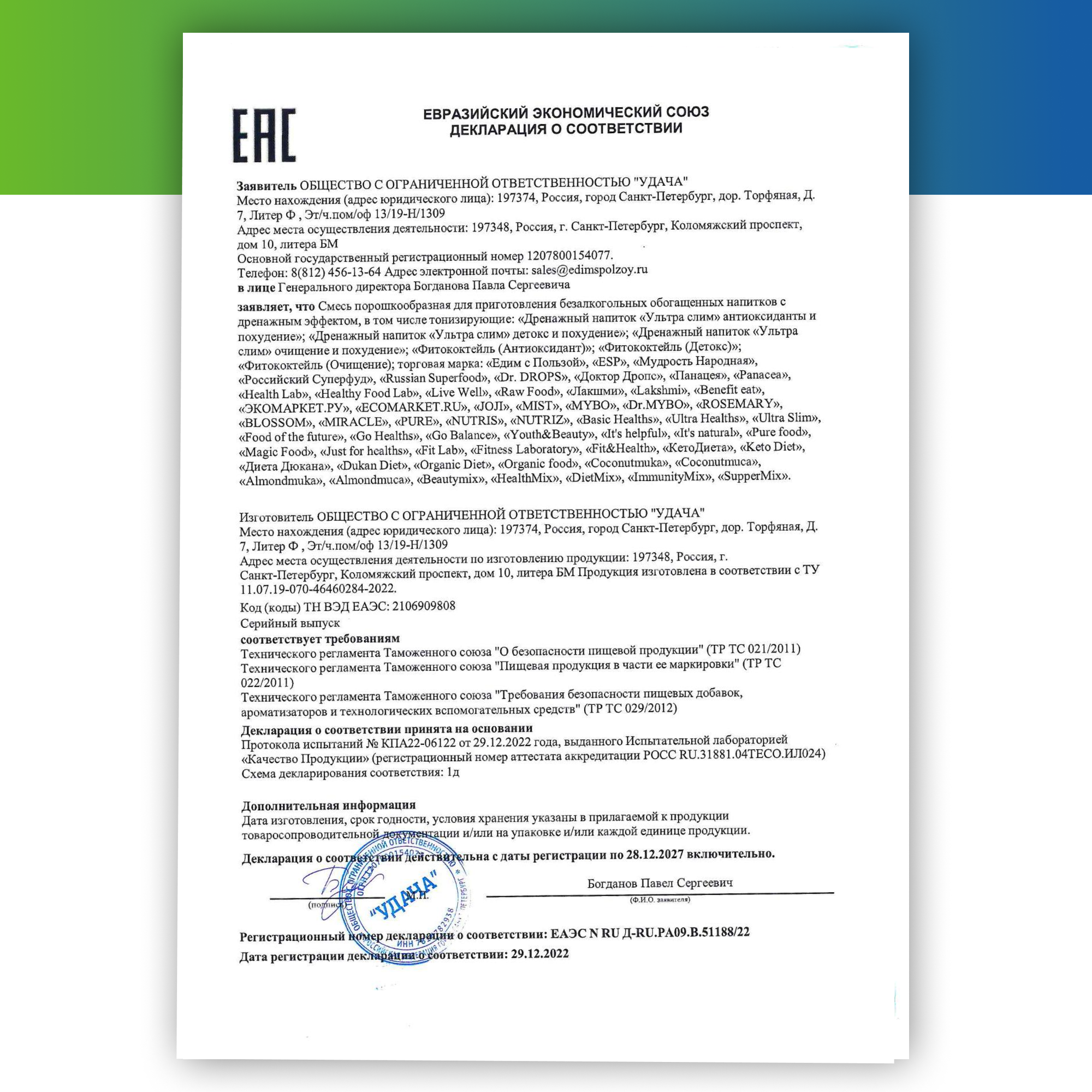 Дренажный напиток ультра слим Манго 300 гр - 60 порций / детокс снятие отечности