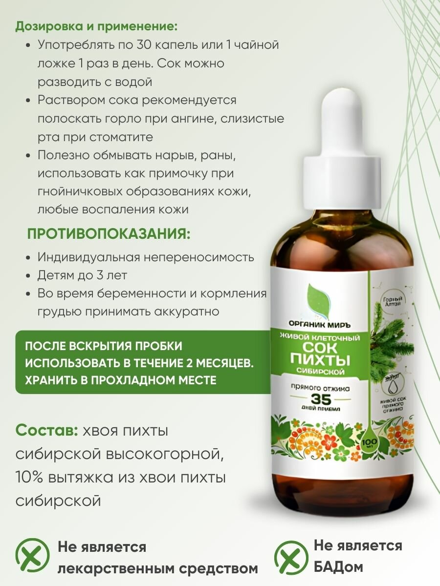 Живой клеточный сок высокогорной Пихты Сибирской прямого отжима органик миръ 100 мл интересное: