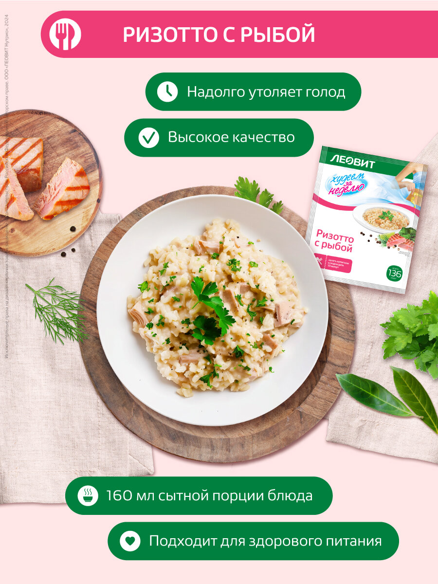 Ризотто с рыбой диетическое 12 шт по 40 гр Худеем за неделю от ЛЕОВИТ для похудения рис быстрого приготовления интересное: