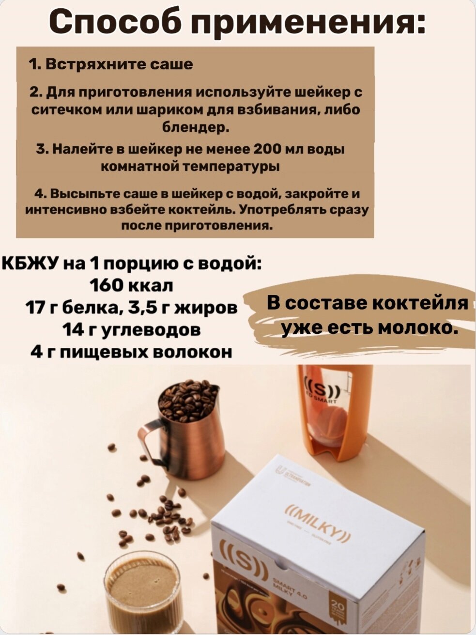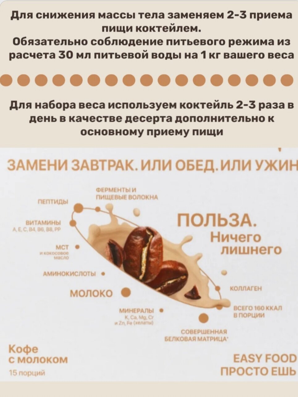 СохранитьПротеиновый коктейль для похудения или набора мышечной массы 15 саше со вкусом "Кофе с молоком" интересное: