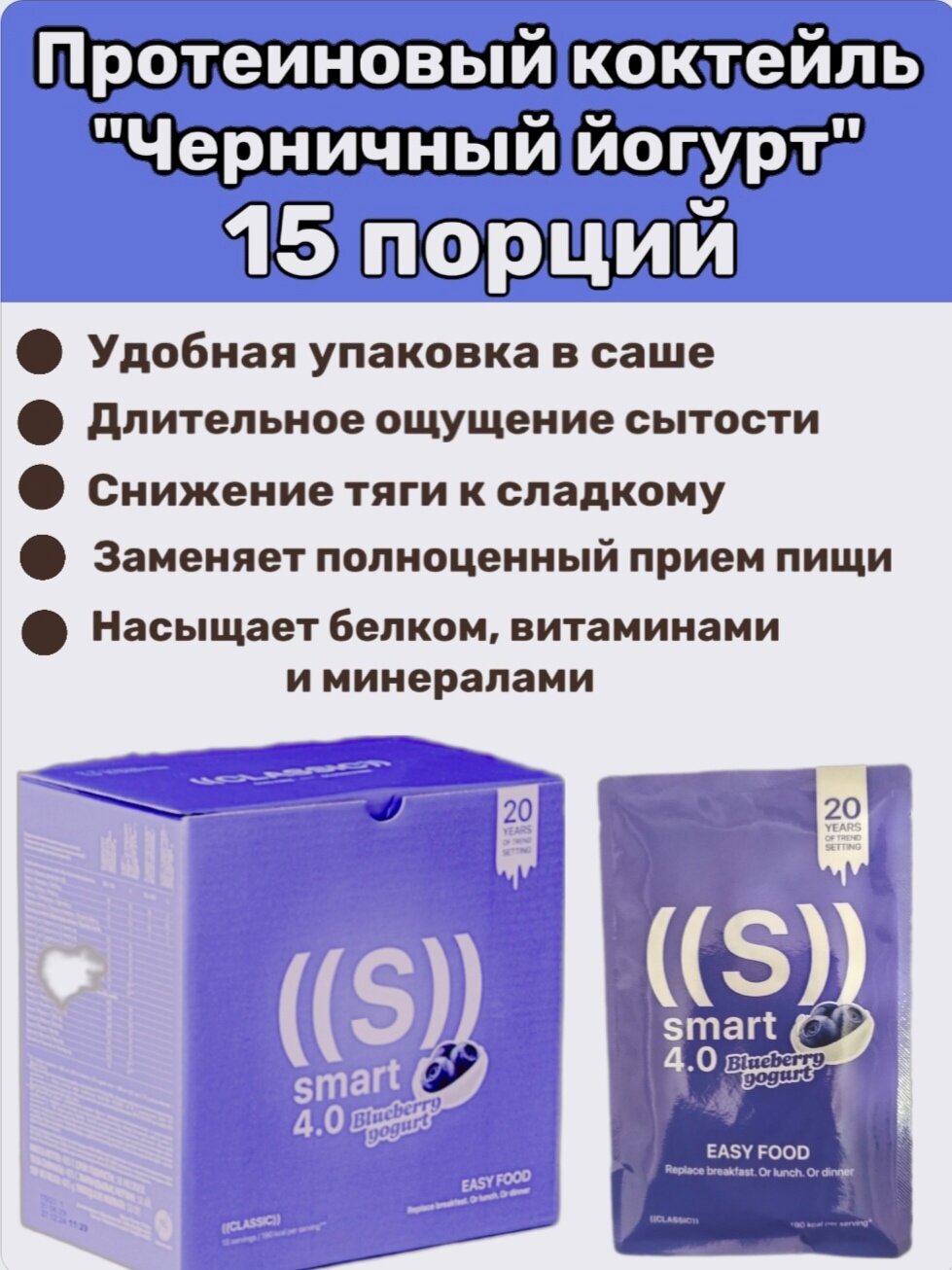 Ниже Вы можете прочитать отзывы на Протеиновый коктейль для похудения или набора мышечной массы 15 саше со вкусом "Черничный йогурт", ознакомится с подробными характеристиками, посмотреть интересные обзоры и фотографии на Протеиновый коктейль для похудения или набора мышечной массы 15 саше со вкусом "Черничный йогурт".